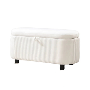 Let’s be honest—we all need a little extra storage. But why settle for boring? This modern storage bench does double duty. It adds elegant charm while secretly hiding all your stuff. From blankets to books, shoes to seasonal wear—everything fits neatly inside the lift-top compartment. Wrapped in soft white fabric with vertical channel tufting, it's visually calming. Sophisticated. Clean. Its rounded oval shape softens your space while giving it a fresh, modern edge.