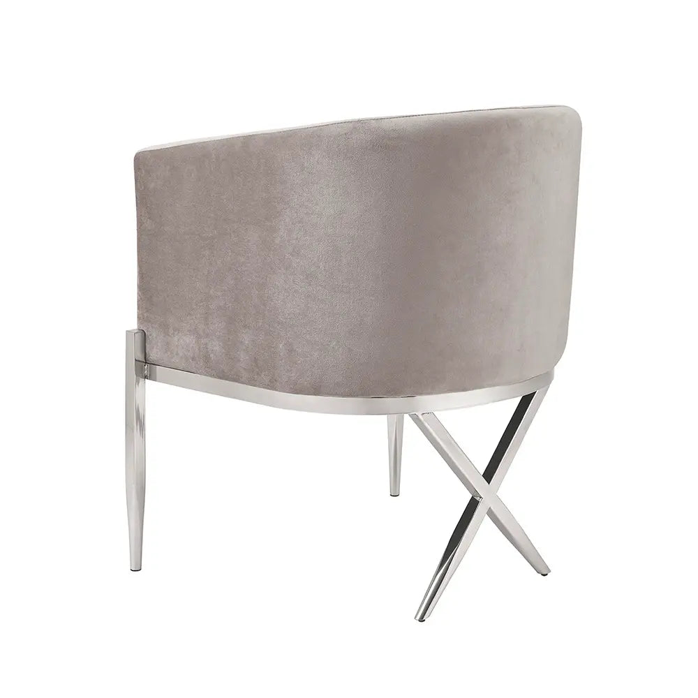 Anton Grey Velvet Accent Chair with Stainless Steel Frame