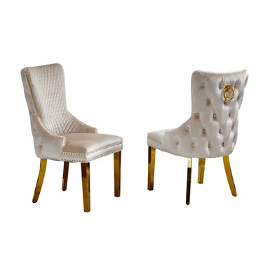 Creme Velvet Accent Chair with Knocker & Gold Frame