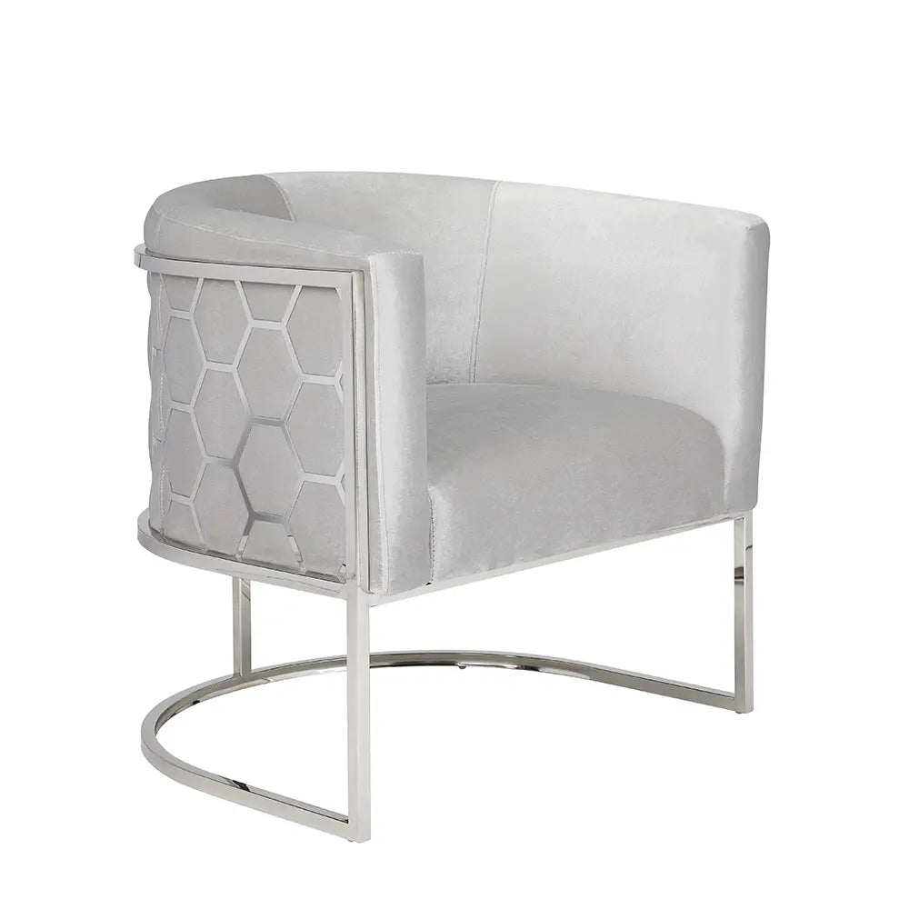 Grey Velvet Accent Chair – Stainless Steel Base & Custom Fabric Option