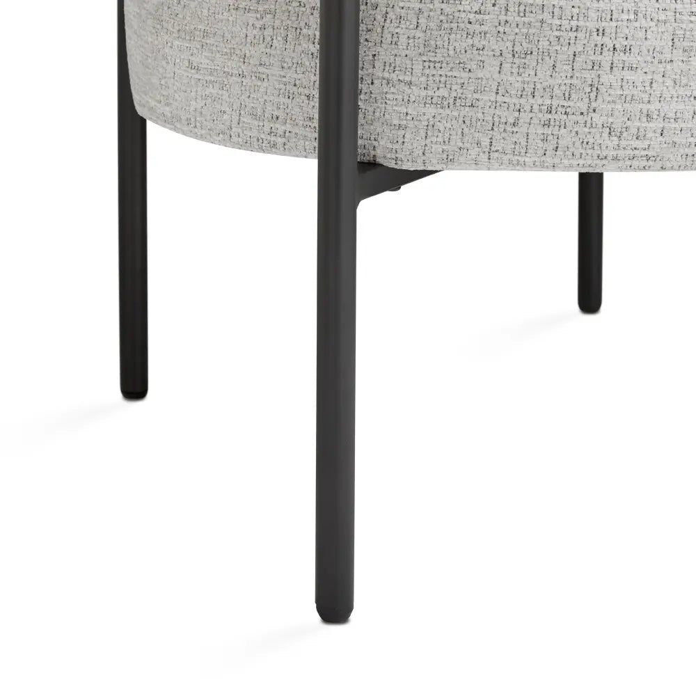 Leg View Of Mallory Grey Linen Accent Chair with Black Metal Frame. Black Metal Legs ensure long lasting Of this chair