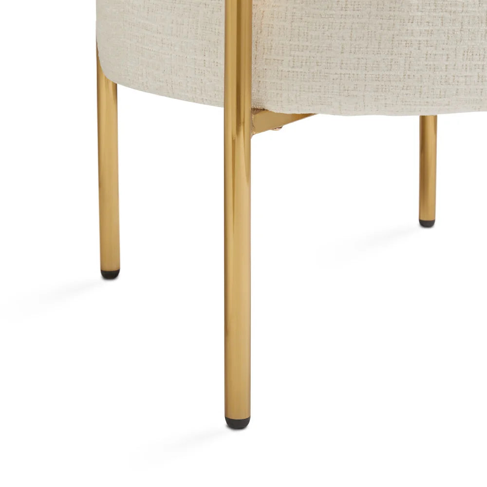 Elevate any space with the stunning Mallory ivory linen accent Chair - a beautiful combination of comfort, sophistication and contemporary luxury. Stunning, upholstered in soft ivory linen and set on a slim brushed gold frame. This ivory linen accent chair is designed to turn heads. With its minimalist frame and warm earthly tones, it's a perfect fit for any living room, bedroom, reading corner, or high-end snooty lounge.