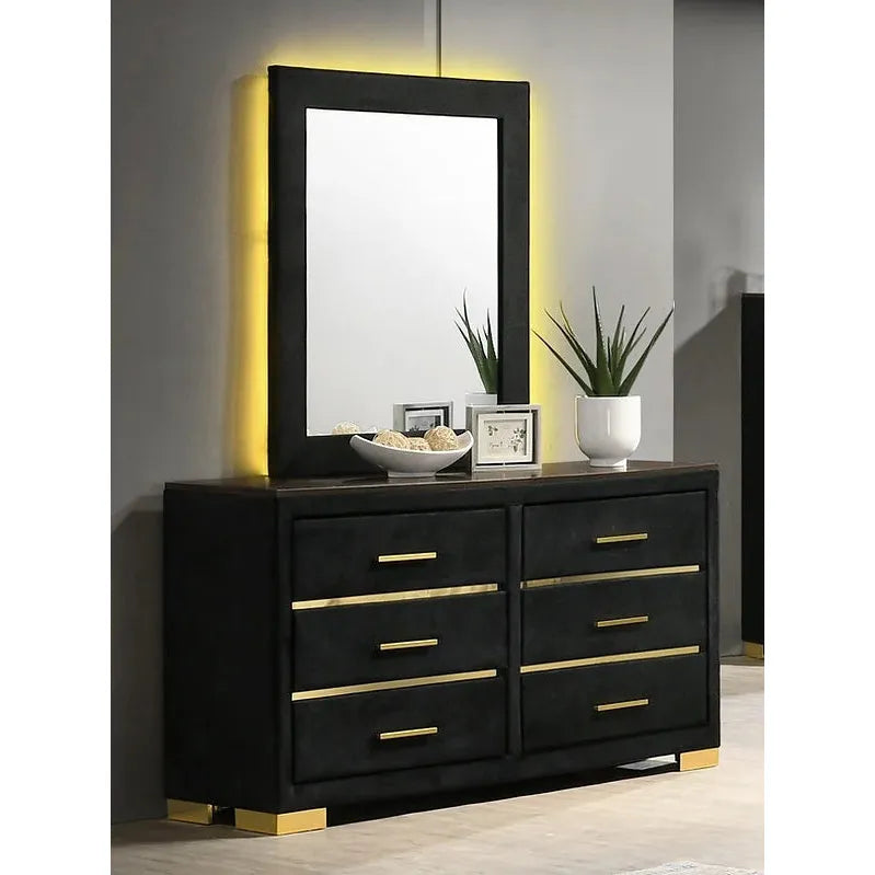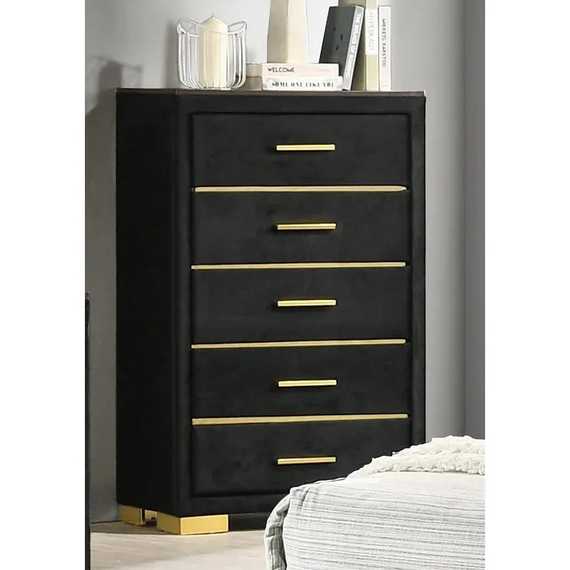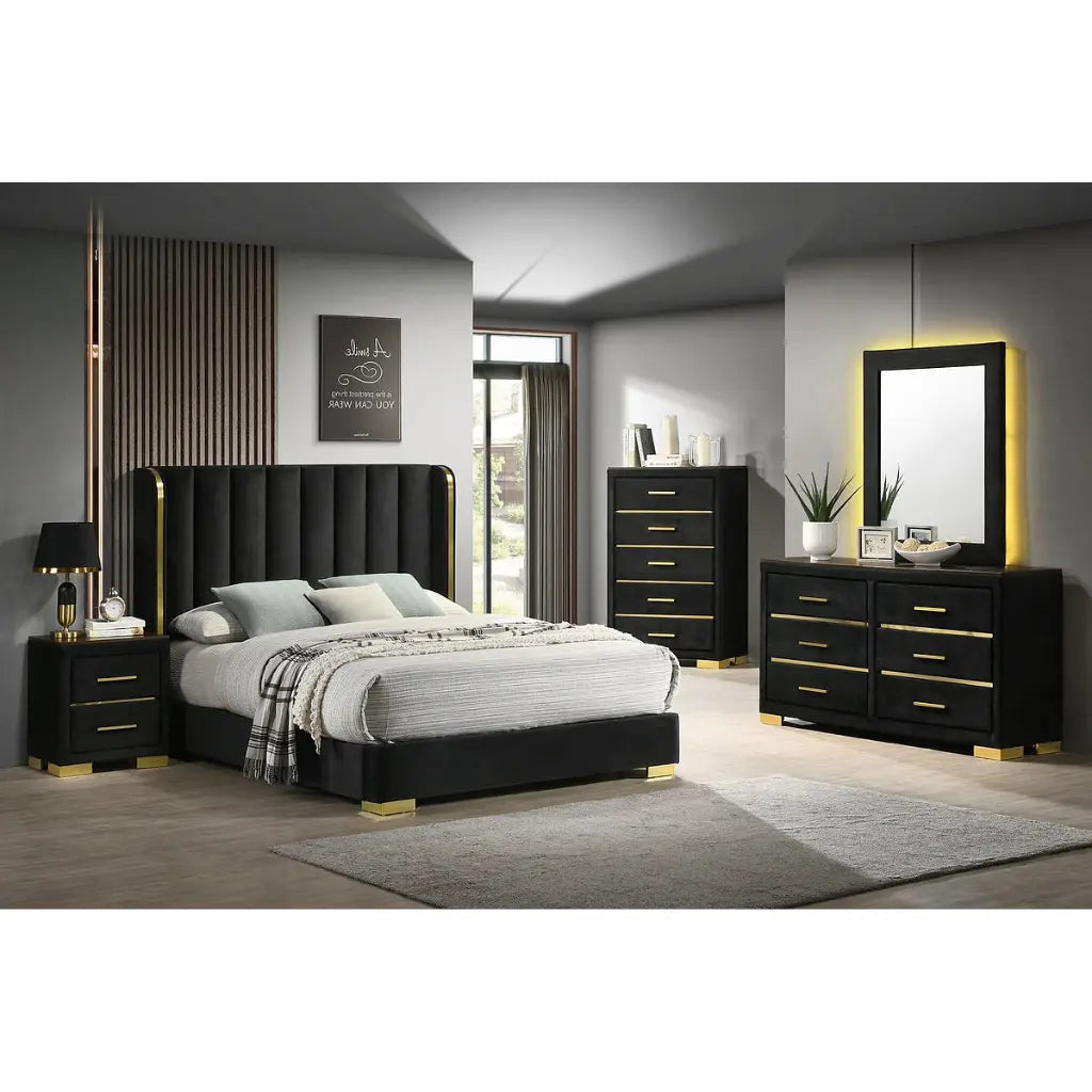 Madison 5 Piece Bedroom Set with Velvet Tufted Bed & Gold Accents