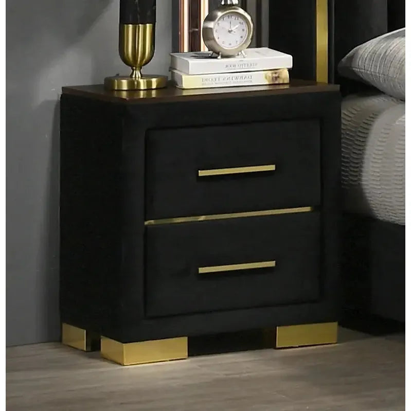 - Finish: Black velvet with gold accents