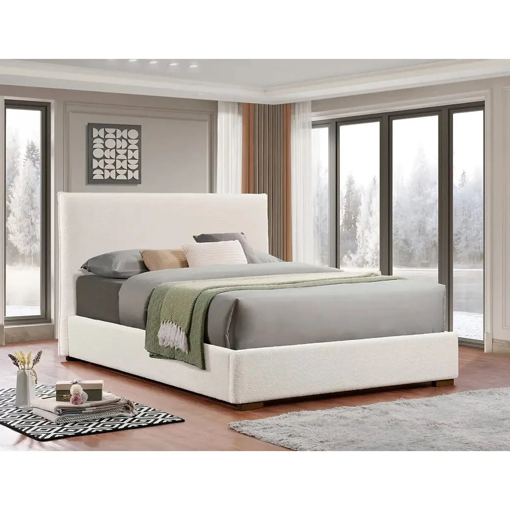 King Platform Bed with Boucle Upholstery King Platform Bed with Boucle Upholstery