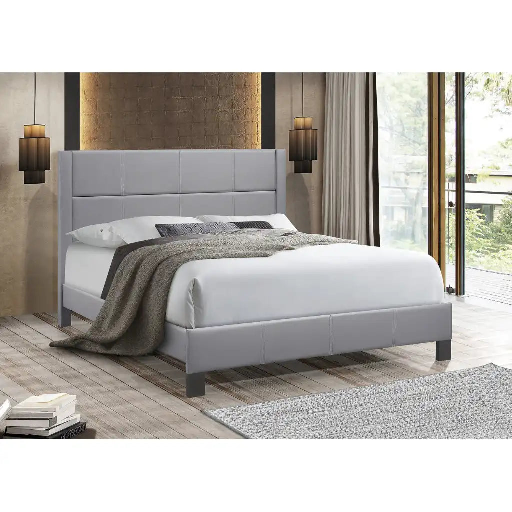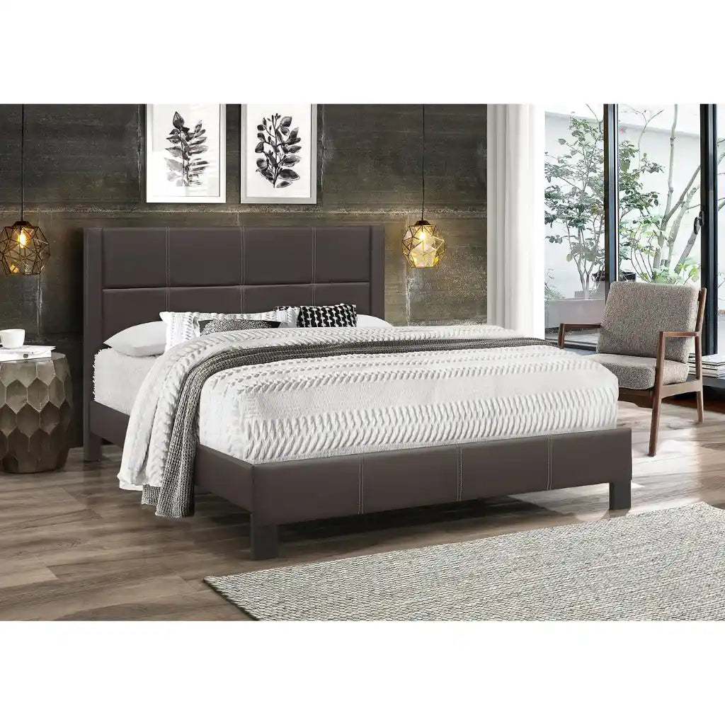 Modern PU Double Bed with Mattress Support & Contrast Stitching
