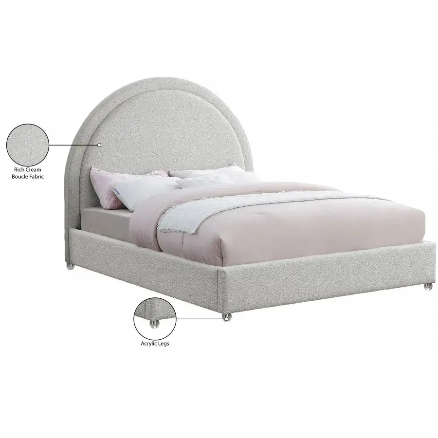 Queen Bed with Cream Bouclé Upholstery & Padded Headboard