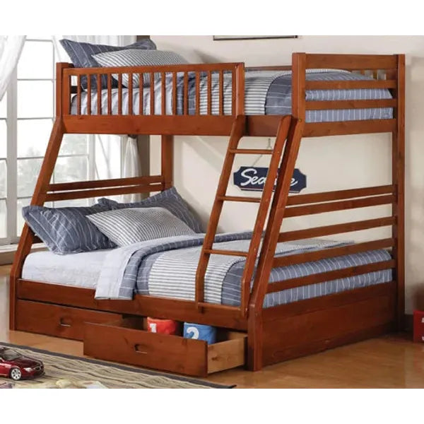Solid Wood Single Over Double Bunk Bed with Storage Drawers