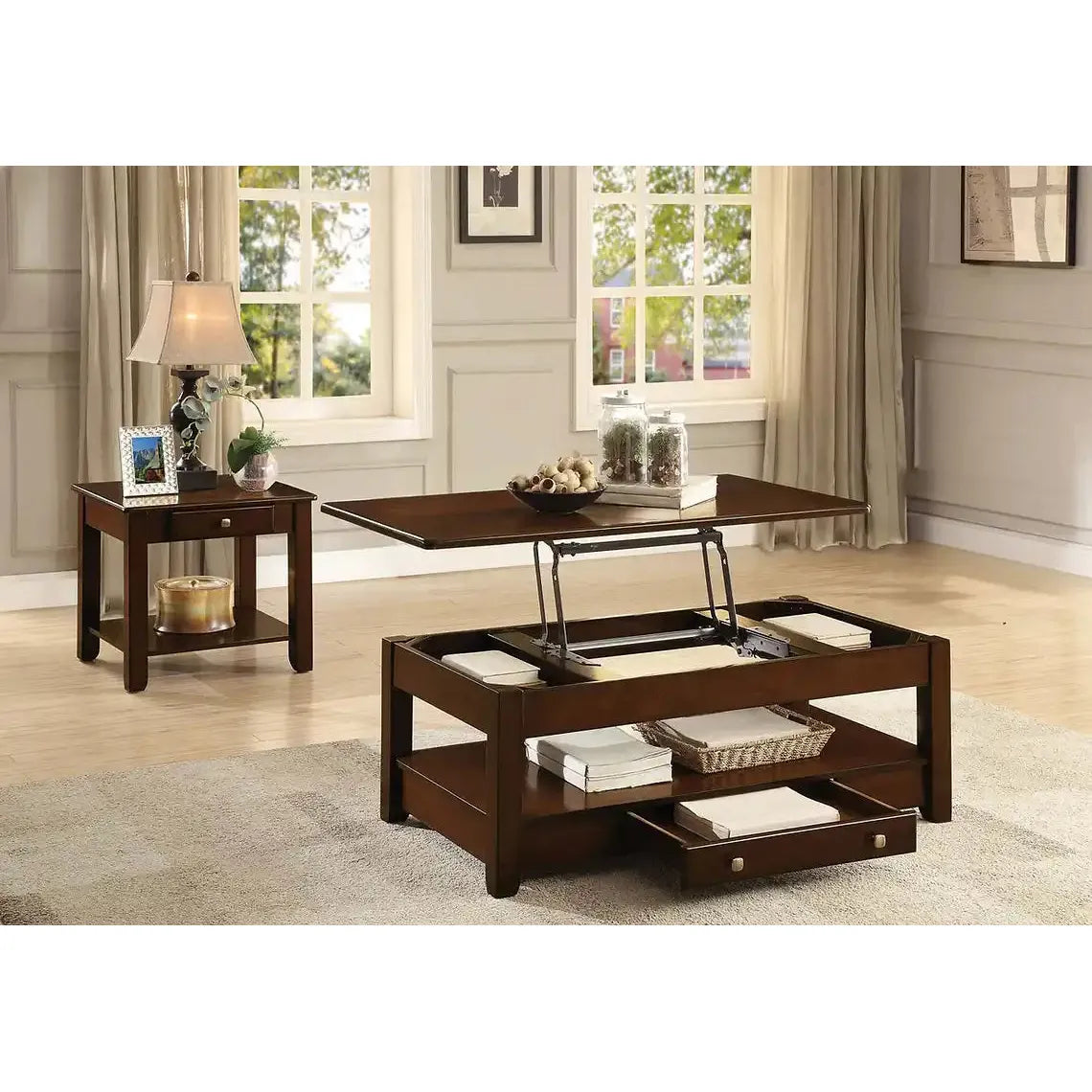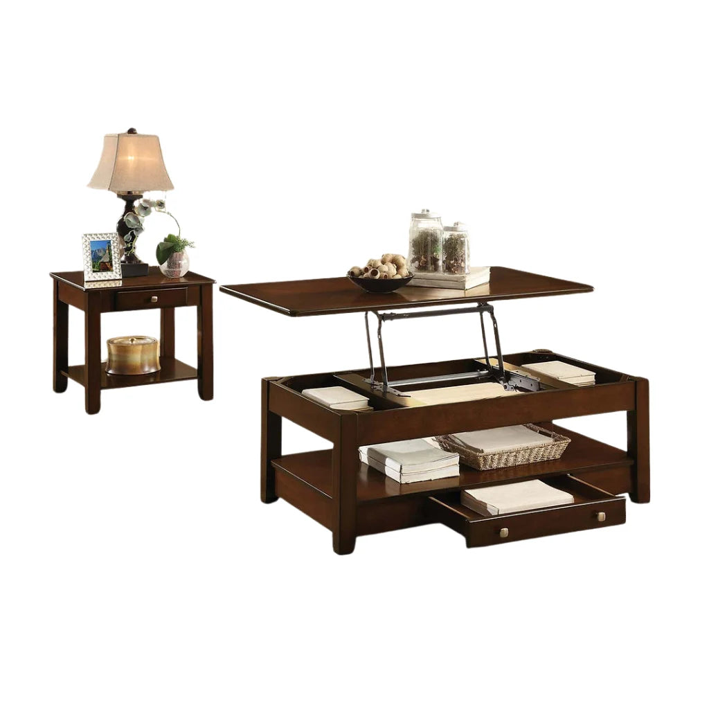Espresso Coffee Table Set with Lift-Top & Drawers