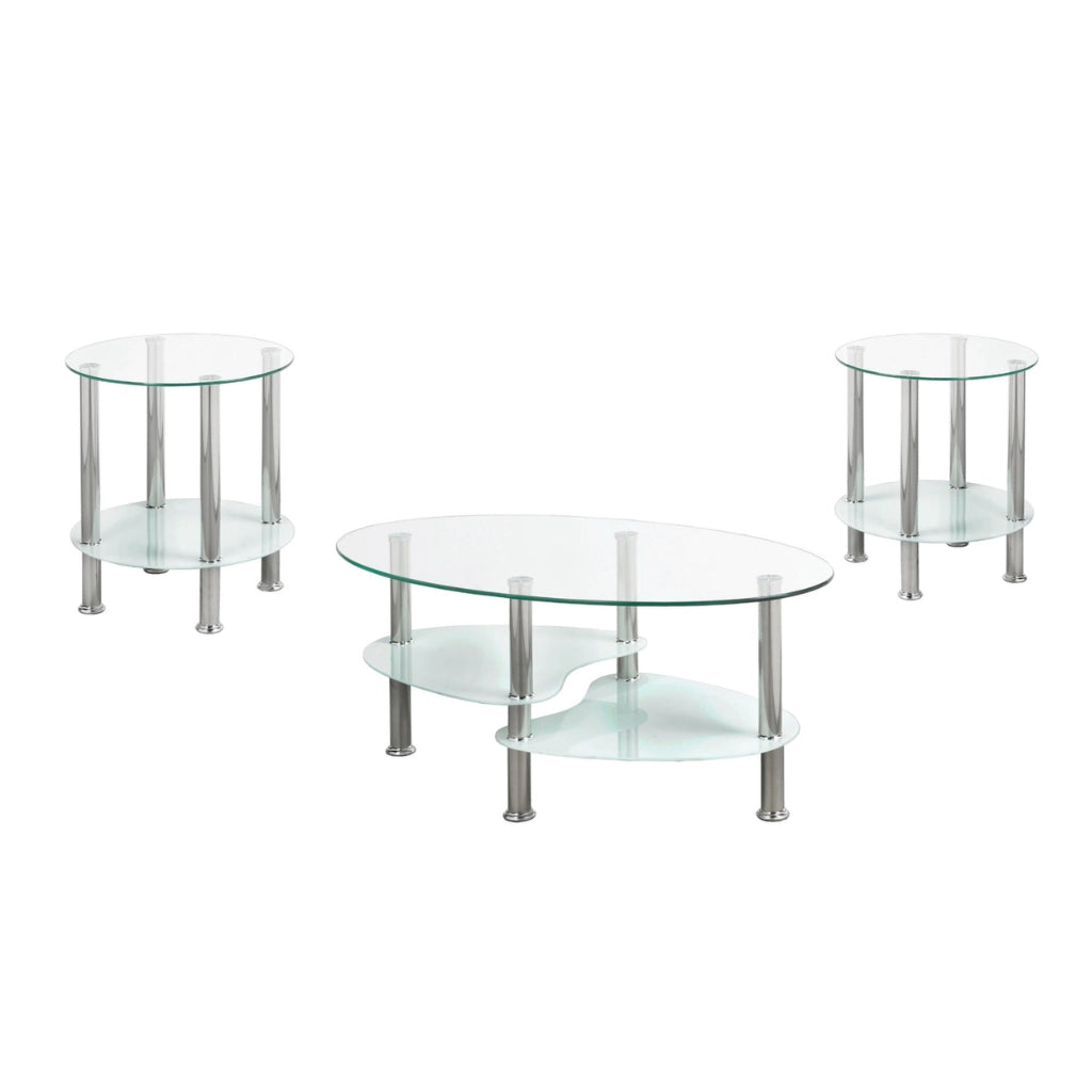 Modern 3-Piece Coffee Table Set With Clear Glass Top