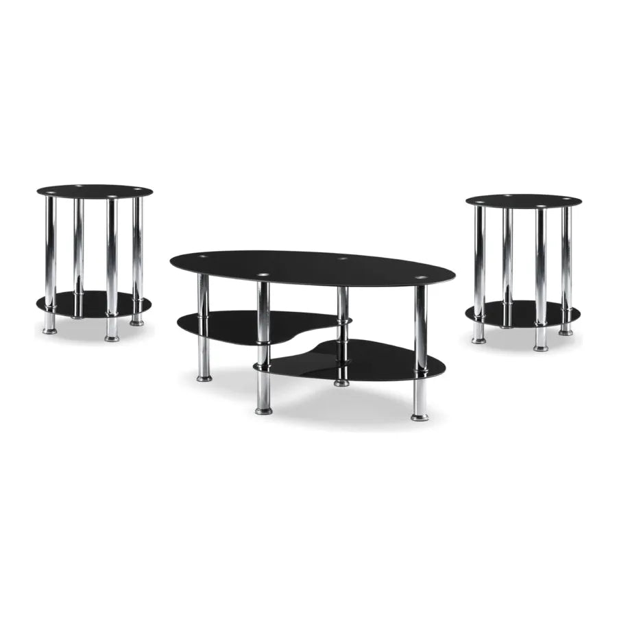 Black glass coffee table set with two matching side tables Black glass coffee table set with two matching side tables