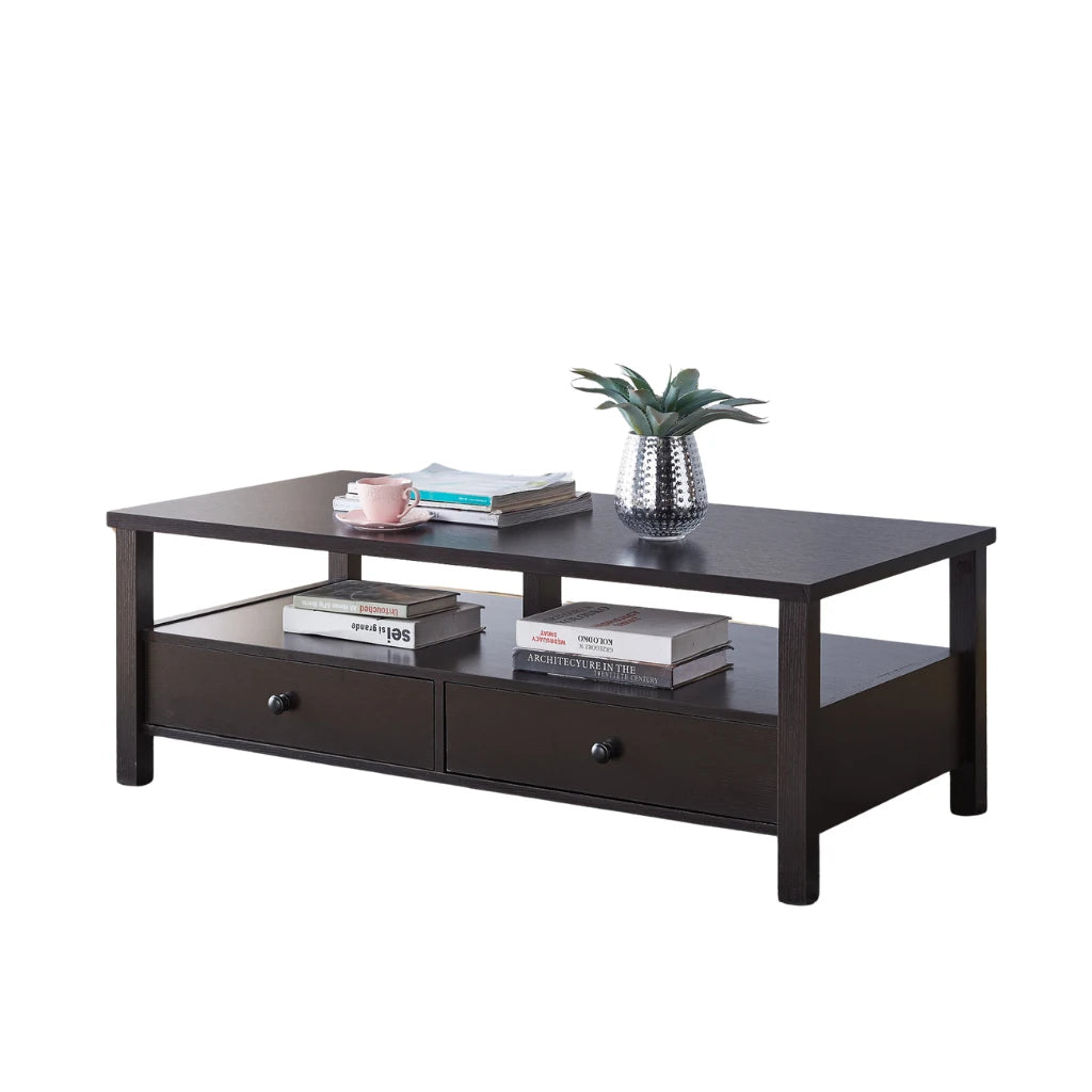 Coffee Table with Storage Drawer & Shelf in Espresso Finish