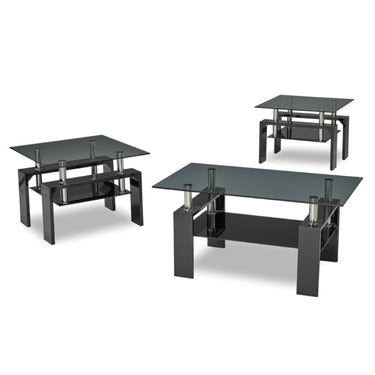 Contemporary 3-Piece Black Glass Coffee Table Set