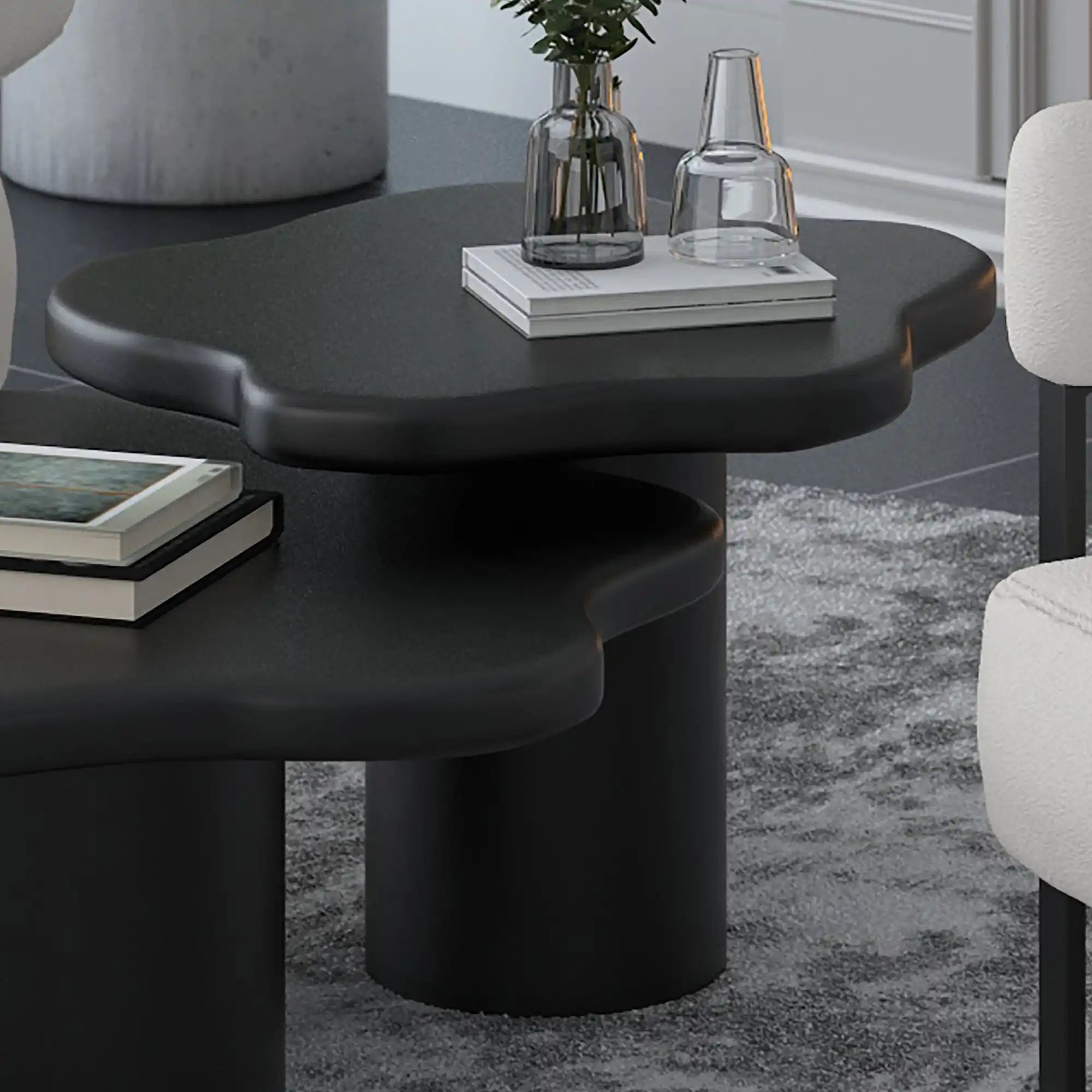 • Mid-century-inspired black coffee table for modern and contemporary living rooms