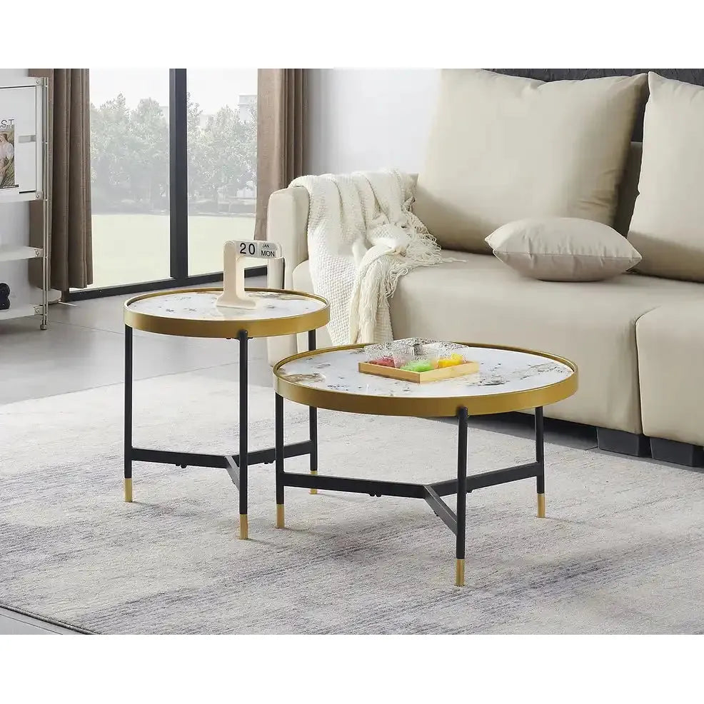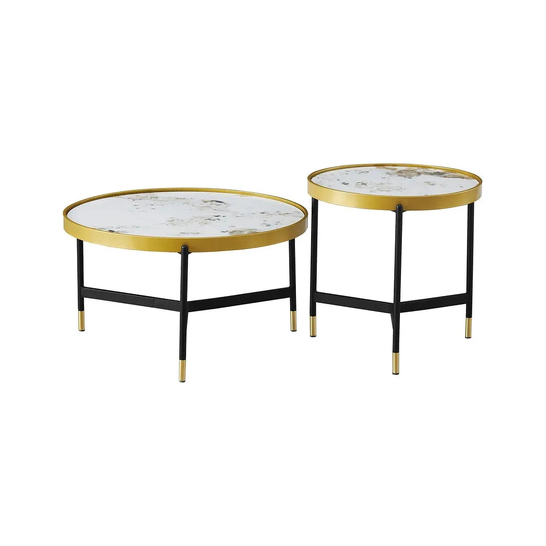 Modern 2-Piece Round Coffee Table Set with Pandora Marble Top