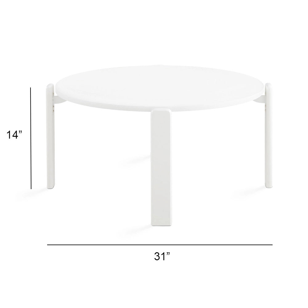 Bring contemporary style to your living room with the Myrtle White Round Coffee Table, a stunning combination of soft aesthetics with solid craftsmanship.