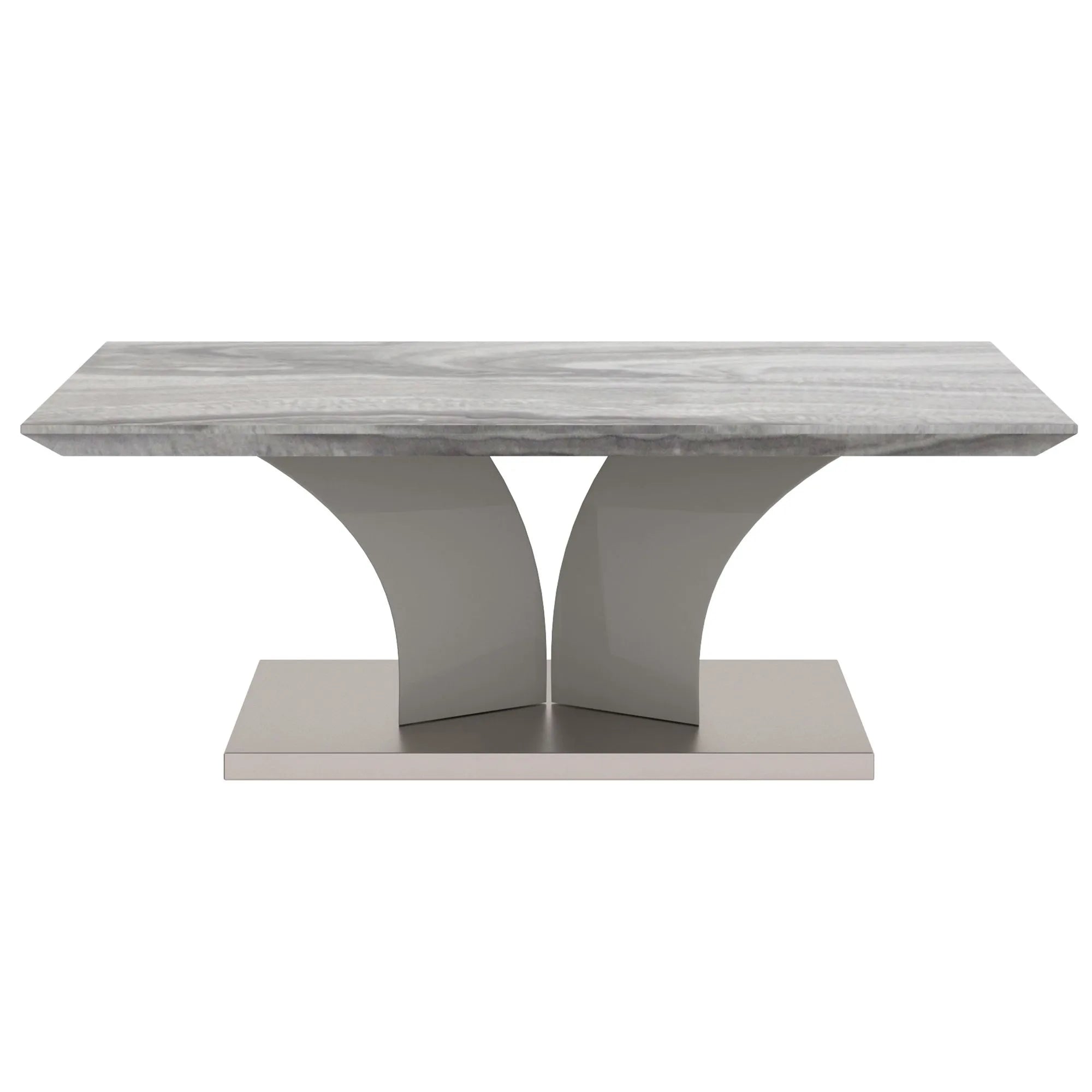 Decorate your living room with the Napoli Faux Marble Coffee Table - Light Grey - Convenience Concepts. This modern centerpiece features a 1.5-inch-thick reverse-bevel tabletop with a high-end marble-look laminate that mimics natural stone without maintenance.The polished stainless steel-covered engineered wood base is supported by sculptural geometric legs in soft grey. The result? A statement piece that’s striking and versatile.