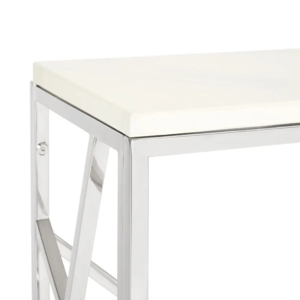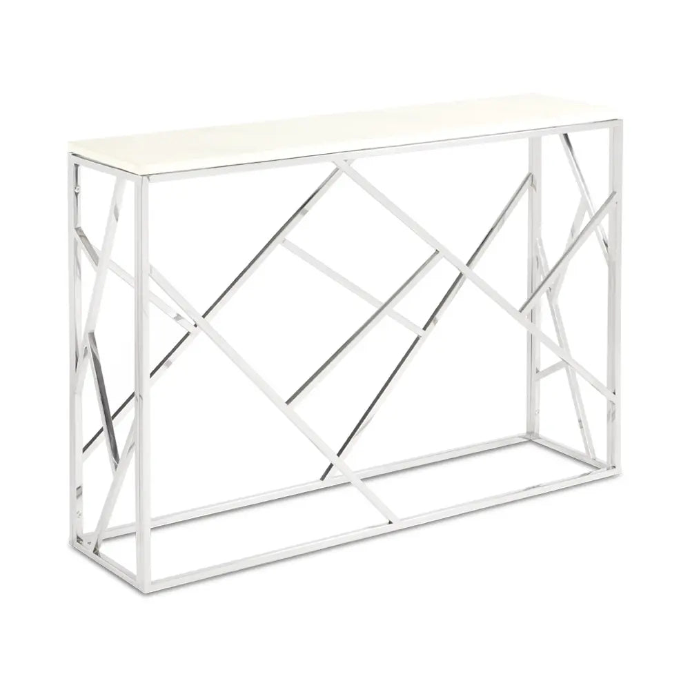The Carole marble-top console table provides a fresh and modern look to any room. With a faux marble surface that combines stone and veneer construction, this table offers an upscale appearance without the weight of natural stone and is easy to clean. A polished stainless steel frame creates lustrous contrast and ensures reliable support, while lending a striking finish to this stunning piece.