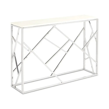 Whether used in a foyer or entryway, hallway or living room, this table is sure to be a stylish accent in any space it calls home. Stylish lines, shiny metal and a marble-like finish achieve an upscale, designer-inspired look.