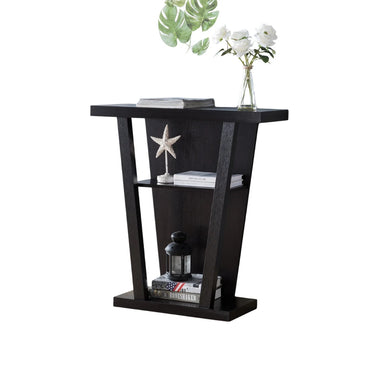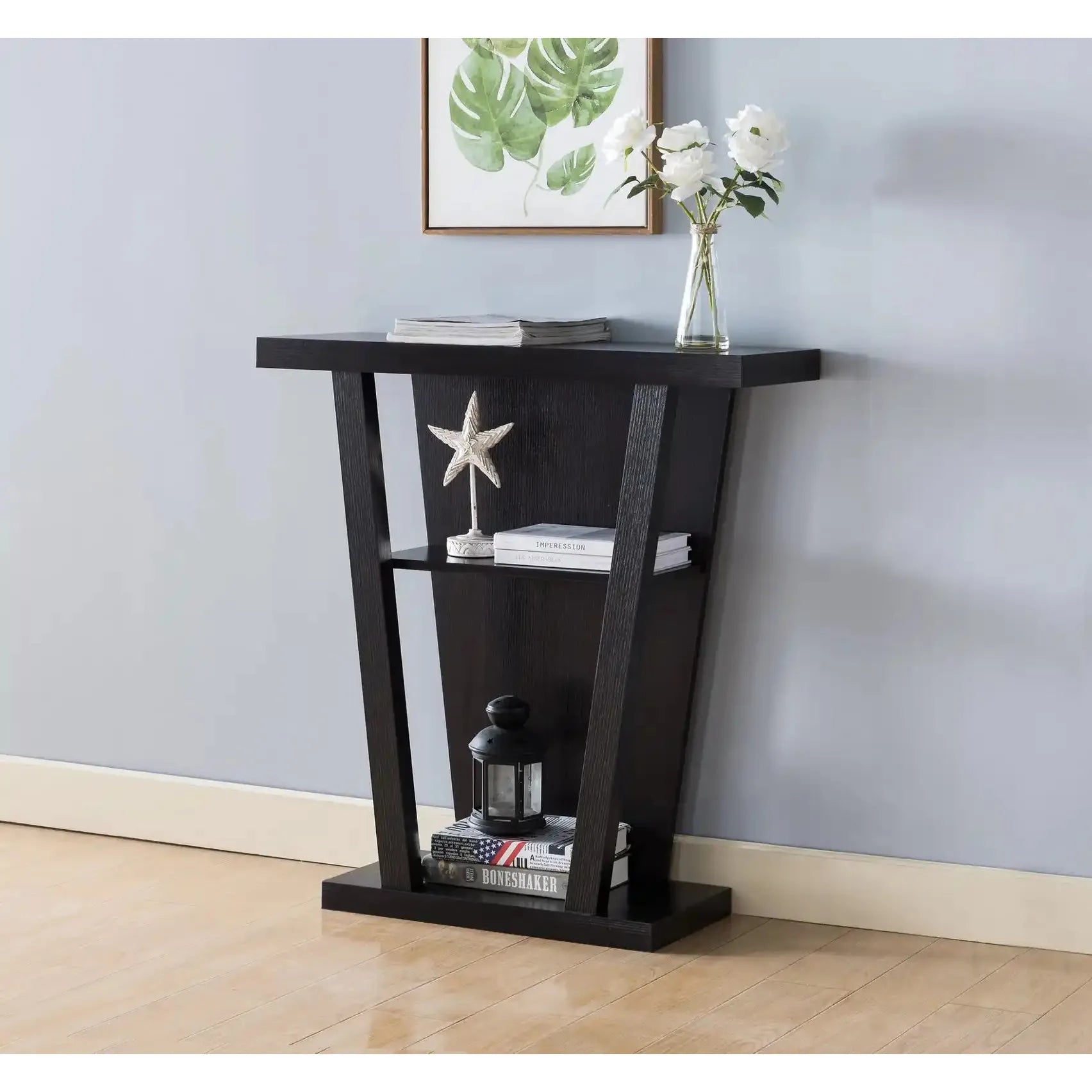 Looking for a smart blend of style and storage? This espresso console table delivers. Solid feeling. Sleek finish. It’s made from quality wood veneer and engineered wood. You’ll appreciate its clean lines, versatile function, and polished chrome knobs. It fits perfectly by your sofa, behind chairs, or in a cozy entryway.