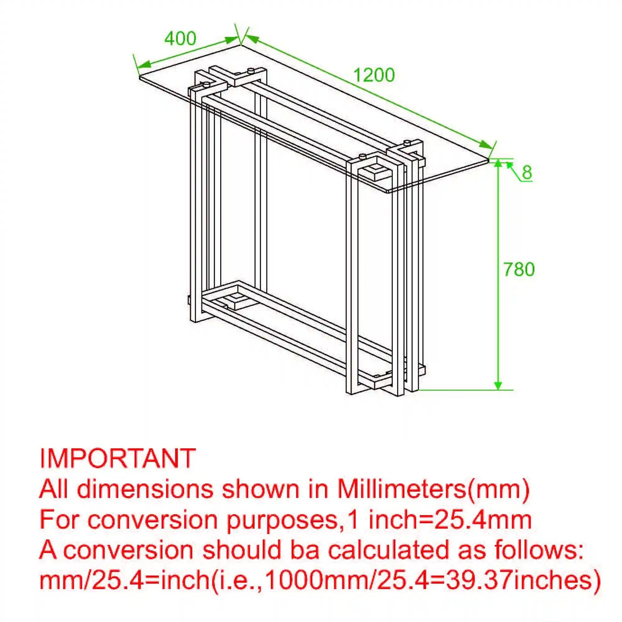- Modern glass console table -Silver/Gold polished contemporary glass console table