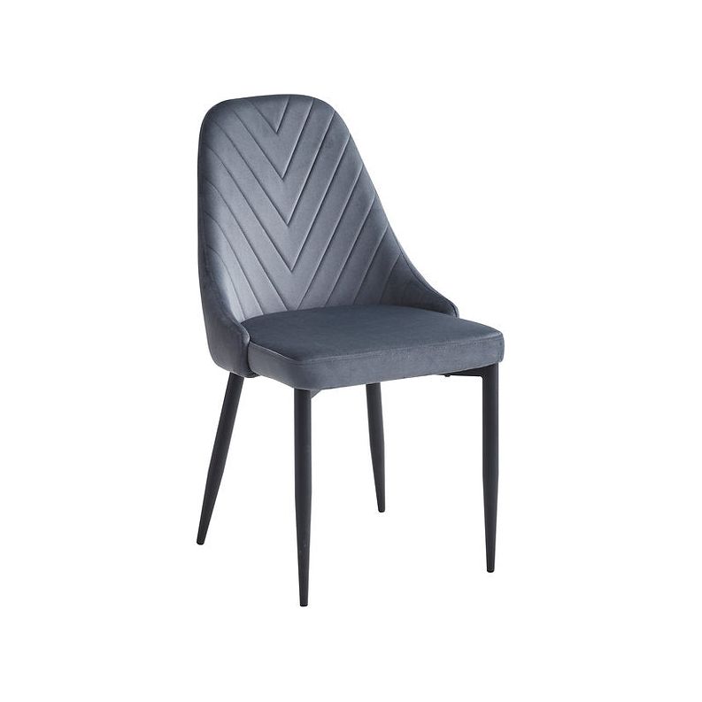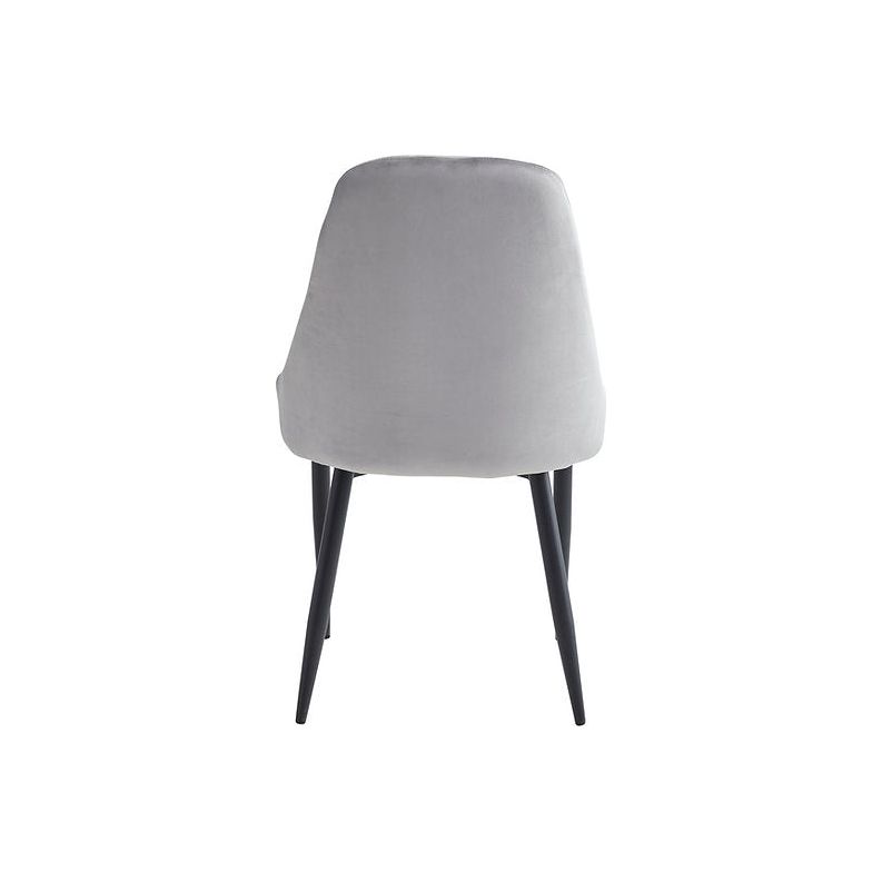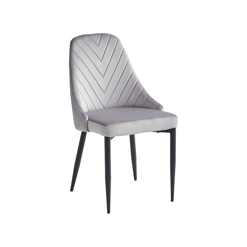 Style meets practicality with this elegant set of 6 grey velvet dining chairs. Wrapped in soft grey velvet and supported by sturdy black steel legs, these chairs are the perfect blend of comfort and contemporary style. Their sleek design and modern finish make them a great fit for any dining space, whether you're hosting formal dinners or casual gatherings. The smooth texture and clean silhouette provide a high-end look without sacrificing everyday durability.