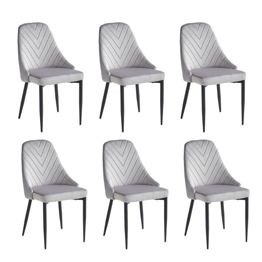 6 Piece Grey Velvet Dining Chairs with Black Steel Legs