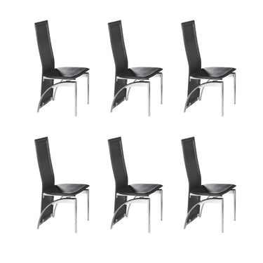 6-Piece Modern Black Dining Chairs With Chrome Legs