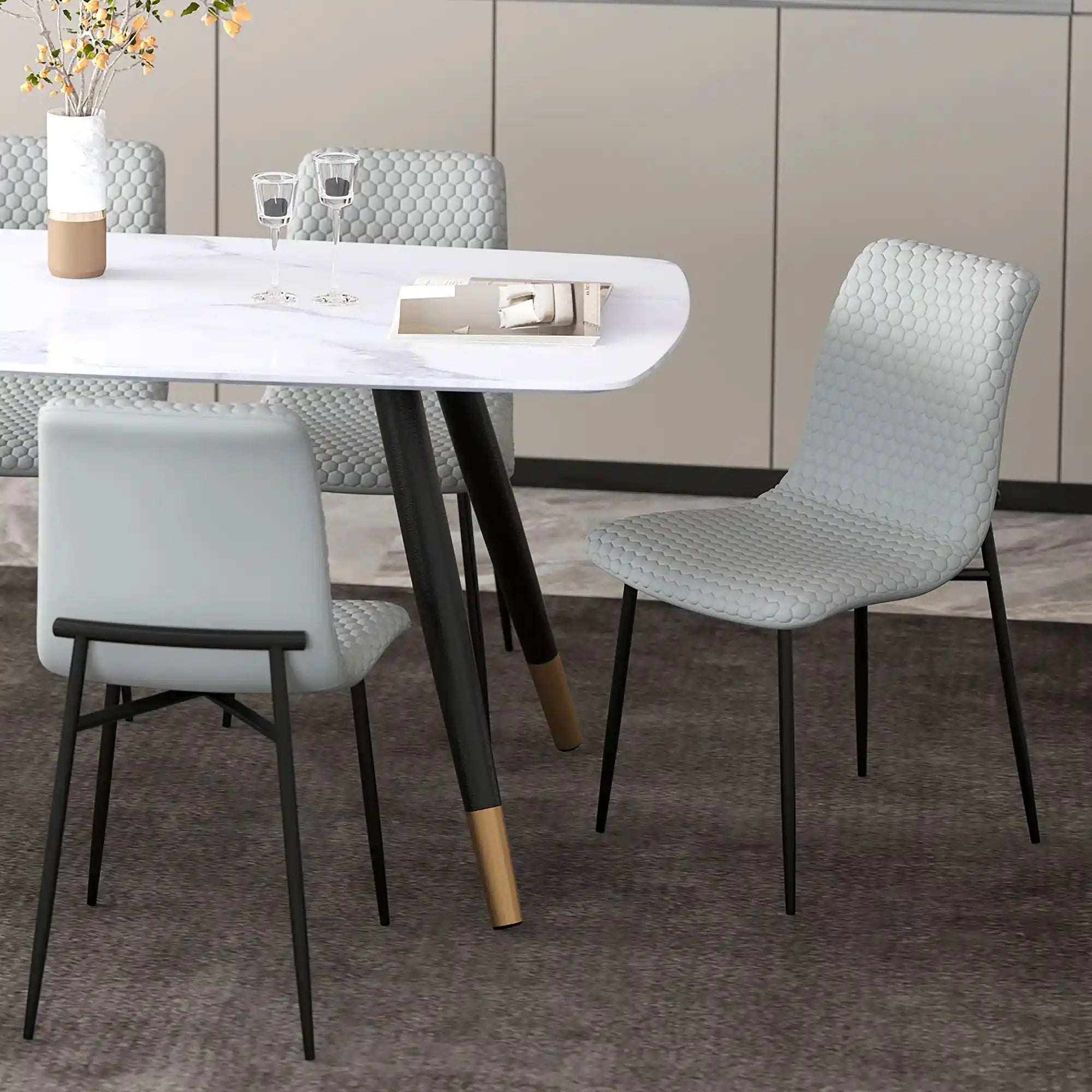 Built to last, these chairs are upholstered in what feels like a durable, soft faux leather fabric that is easy to maintain and wipes clean. The support of the medium-firm padding allows for hours of comfortable seating at the dinner table, hosting a conversation, or working from home. Their non-neutral colors also mean they match with just about any table style — from wood to glass to marble.The Brixx chairs in light grey, black, or beige were designed to add an understated touch of elegance to any dining room.