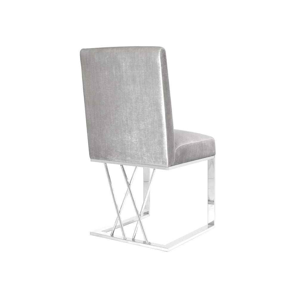 Treat your dining area to a homely and opulent upgrade with the Martini grey velvet dining chair: a fantastically comfortable, classically beautiful, and contemporary item of furniture. Covered in a soft grey velvet. This chair is designed to provide a plush seat. The polished stainless steel legs provide elegance and sophistication that will complement any contemporary décor.