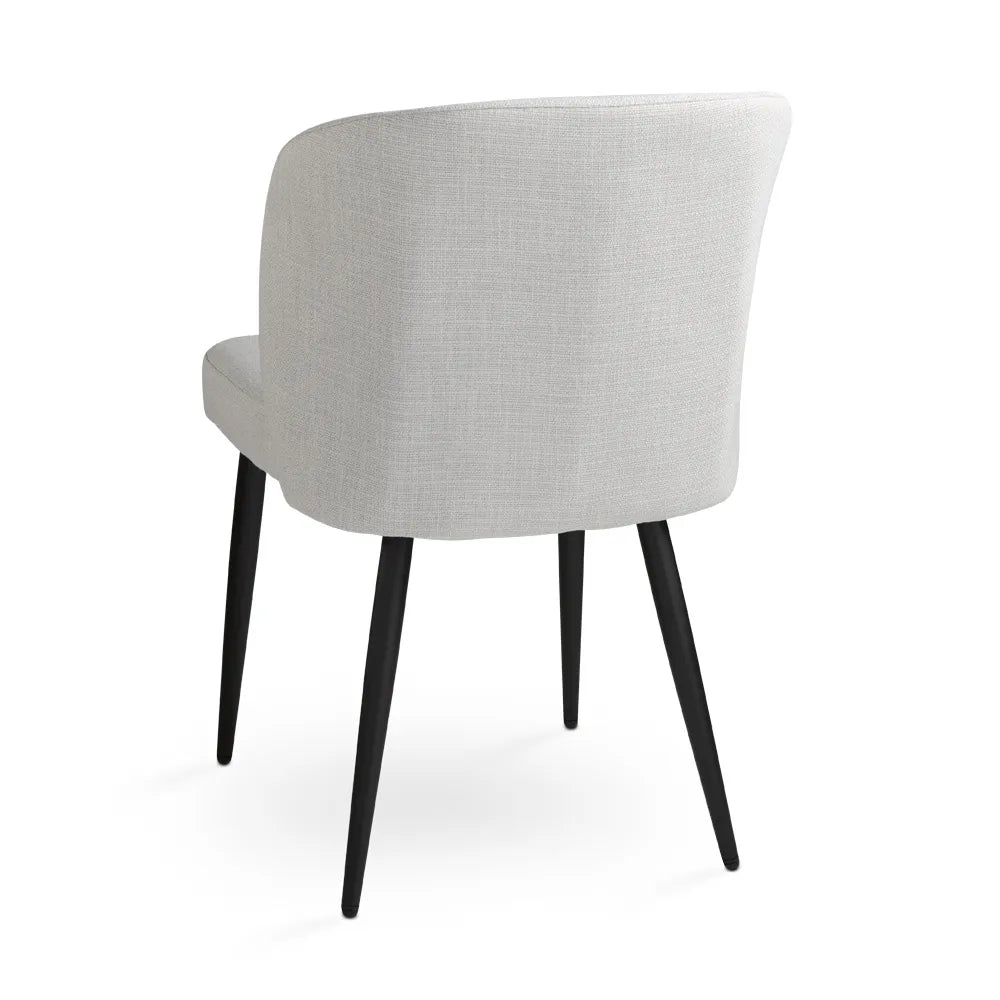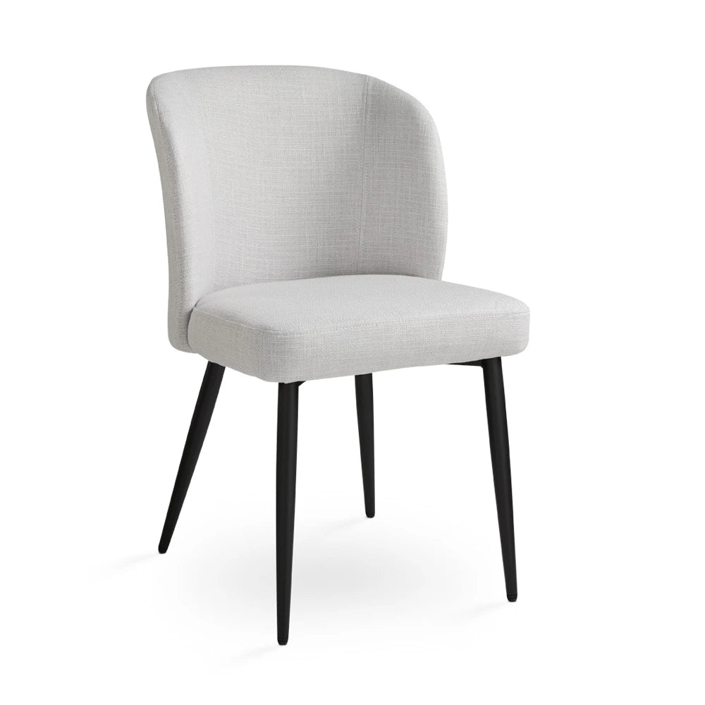 Add a touch of class to your dining area with the Fortina linen dining chair in tranquil light grey. Covered in soft, breathable linen upholstery and mounted on slender black metal legs, this contemporary dining chair offers both style and sturdiness.