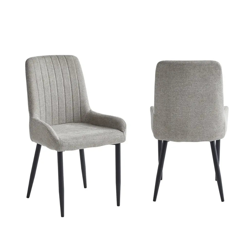 Grey Fabric Dining Chairs With Black Steel Legs - Set of 2