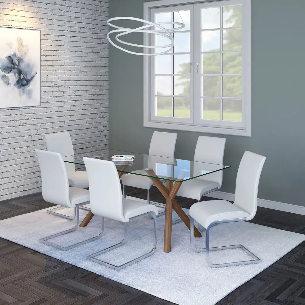 Bring sleek style to your dining space with the Maxim faux leather dining chairs set of 2. Ergonomically designed with style in mind. This chair is set on a chrome base that is designed to flex, making it the perfect all-day chair. Its faux leather exterior upholstery gives it a sophisticated, elegant look while also being easy to take care of, and the curved design of the seat back and the support structure in the back and underneath the sitting cushion make it an ideal and cozy companion for you.