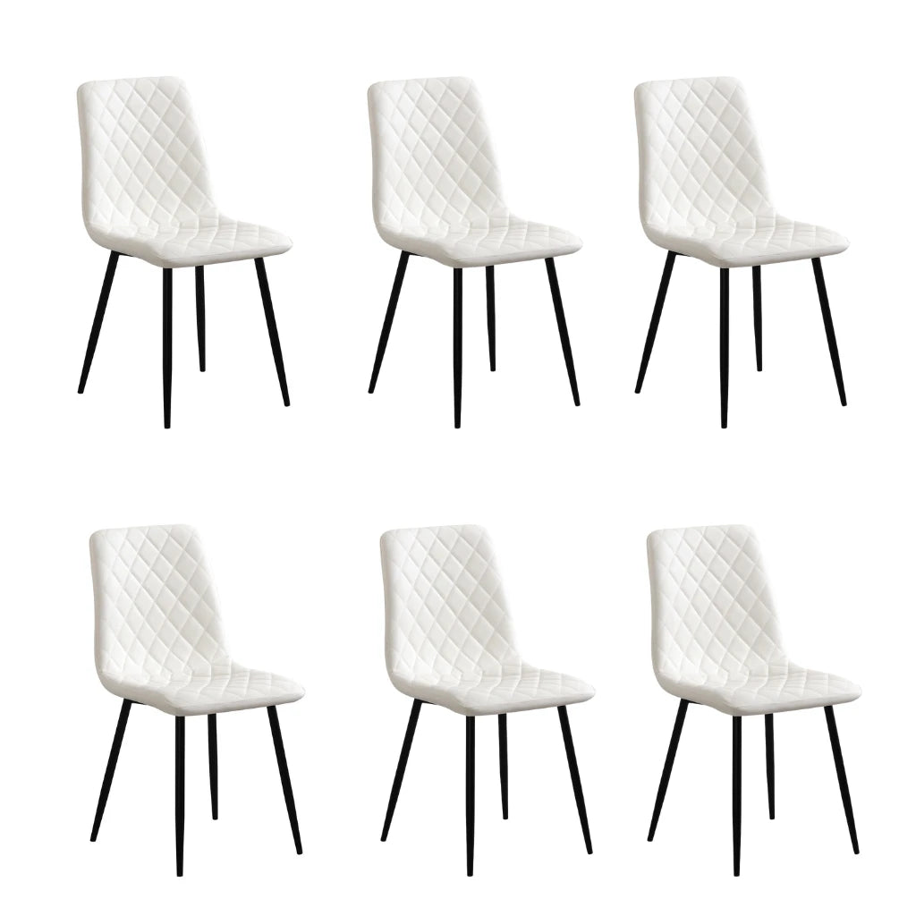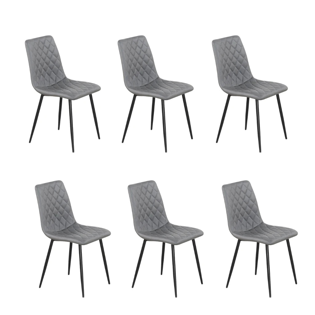 Style meets comfort in the most effortless way. This set of 6 modern dining chairs is designed to elevate your dining space without overwhelming it. Whether you’re hosting guests or enjoying a quiet dinner, these chairs add instant charm. The diamond-stitched upholstery catches the eye. It's not just elegant—it’s practical. Easy to clean and resistant to everyday messes. Available in black, white, or grey, so you can match your mood or décor. The chrome-finished legs give the chairs a sleek, stable base. They’re built to last and feel just as good as they look. Plus, with their gently curved backs and cushioned seats, these dining chairs offer the comfort you crave every day.