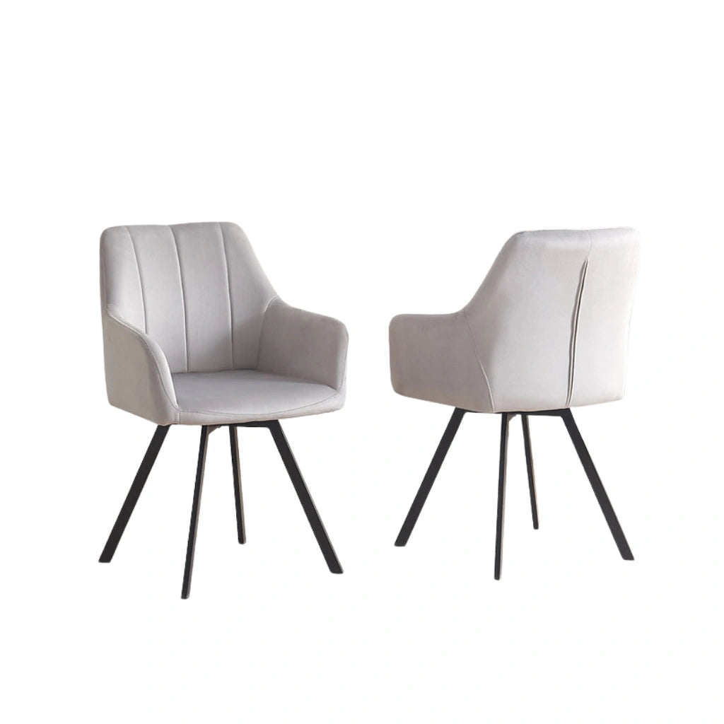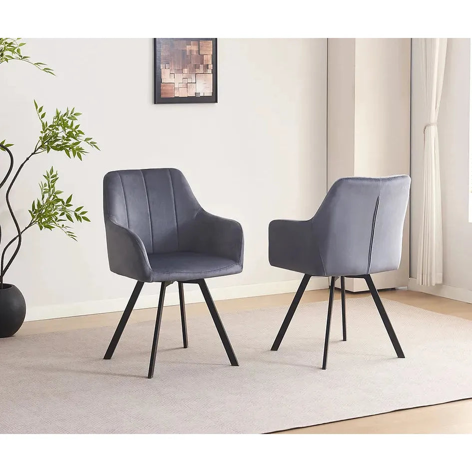 Looking for chairs that blend comfort and modern elegance? These grey swivel dining chairs are here to impress—both in looks and performance. Designed with soft velvet and elegant vertical stitching on the backrest, they add just the right amount of flair to any dining room. The integrated armrests offer extra support, while the 360° swivel base makes every movement smooth and natural. Whether you're hosting a dinner party or having your morning coffee, these chairs always deliver. The black steel legs provide a sleek, sturdy foundation that complements the modern design. With soft grey or deeper grey velvet options, you can match your vibe effortlessly.