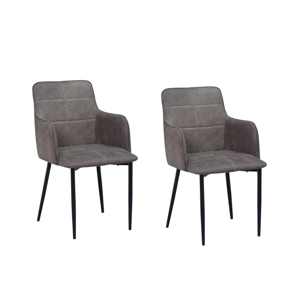 Set of 2 Charcoal Brown Dining Chairs with Arms & Metal Legs