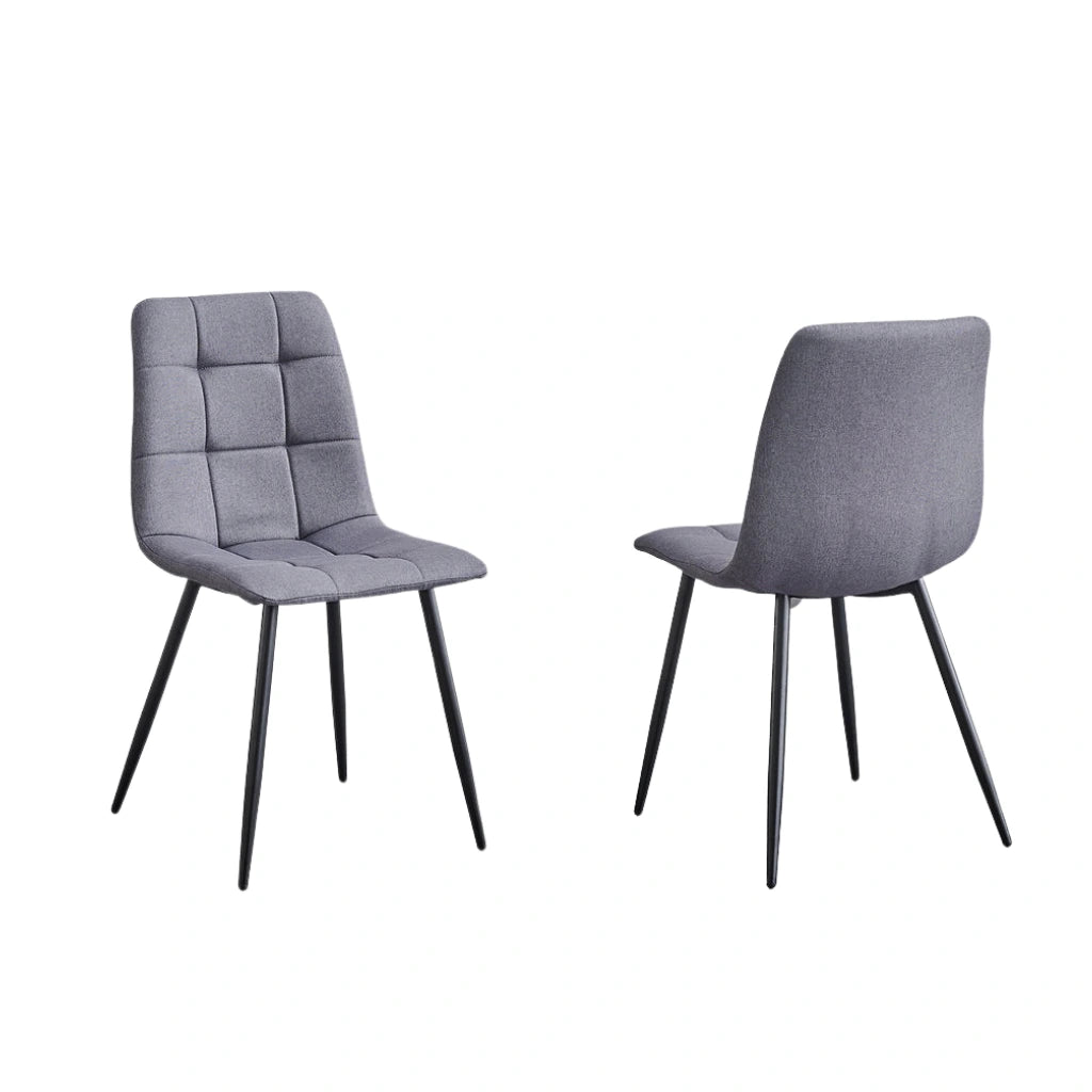 Style and comfort don’t have to be a compromise. This set of 4 grey fabric dining chairs delivers both—beautifully. Wrapped in soft, high-quality fabric, these chairs offer a cozy yet refined look. The cross-stitching adds a subtle touch of texture, while the black steel legs keep the profile modern and grounded. It’s the kind of design that quietly elevates any dining room without overwhelming it. Lightweight but strong, these chairs are built for everyday life—family dinners, casual brunches, and everything in between. And thanks to their versatile style, they complement almost any table.