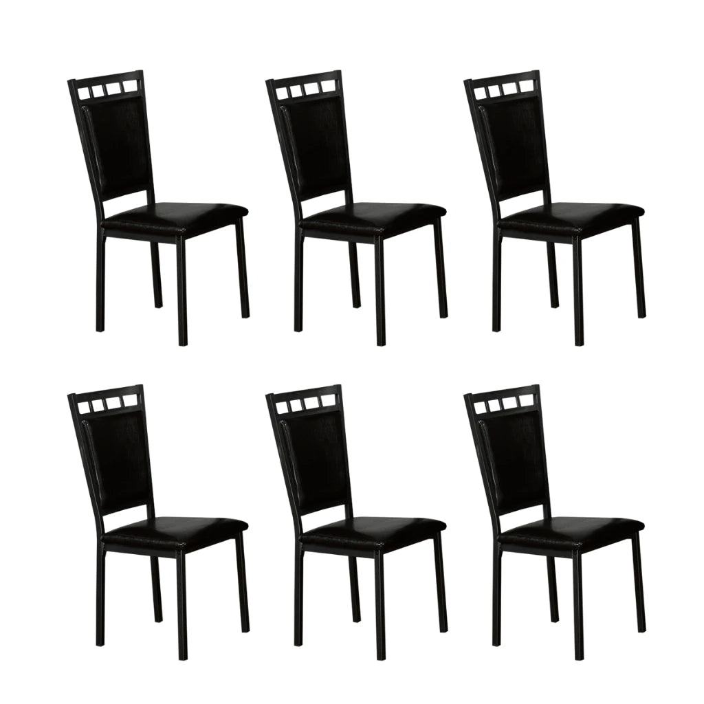 You know what can quietly elevate your dining room? The right chairs. This 6-piece black dining chair set is built for comfort and designed for impact. Each chair features a sleek upholstered seat in rich black—soft, supportive, and easy to clean. The gunmetal legs add a bold, modern touch that instantly upgrades your space. Love the clean lines of a marble table? These chairs are the perfect match.