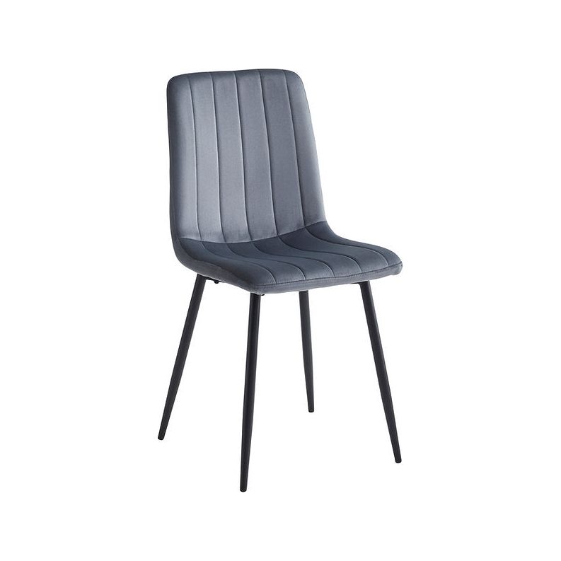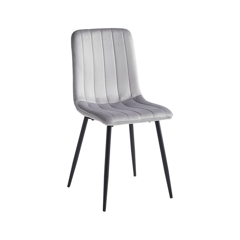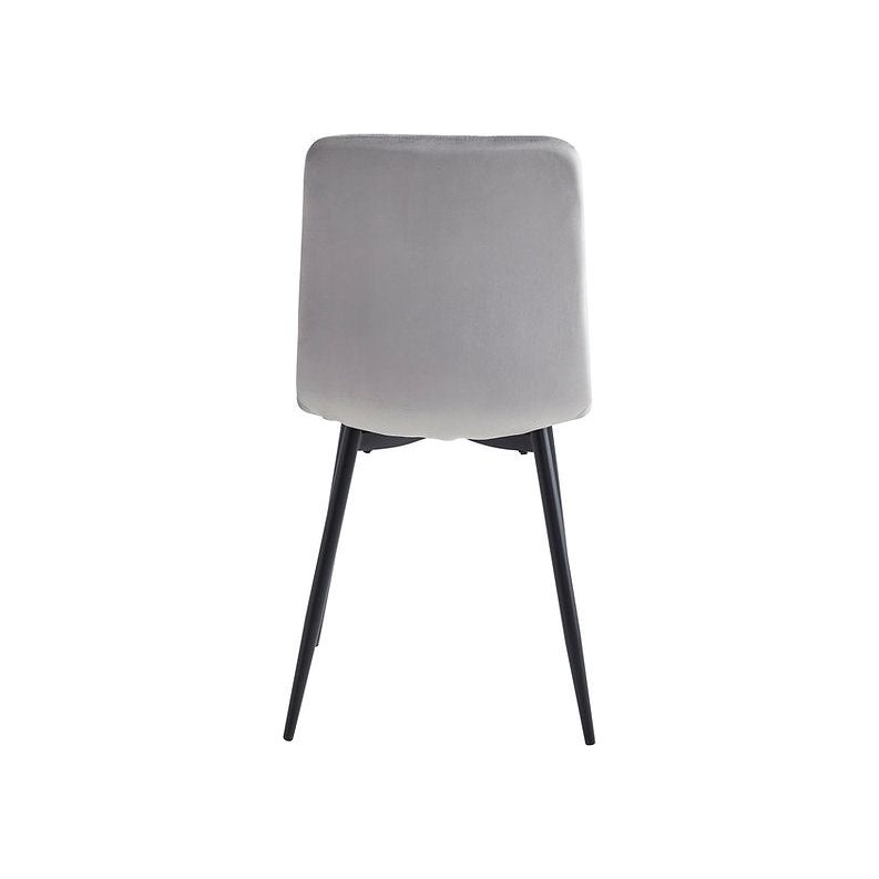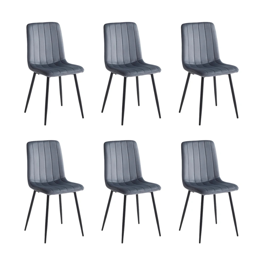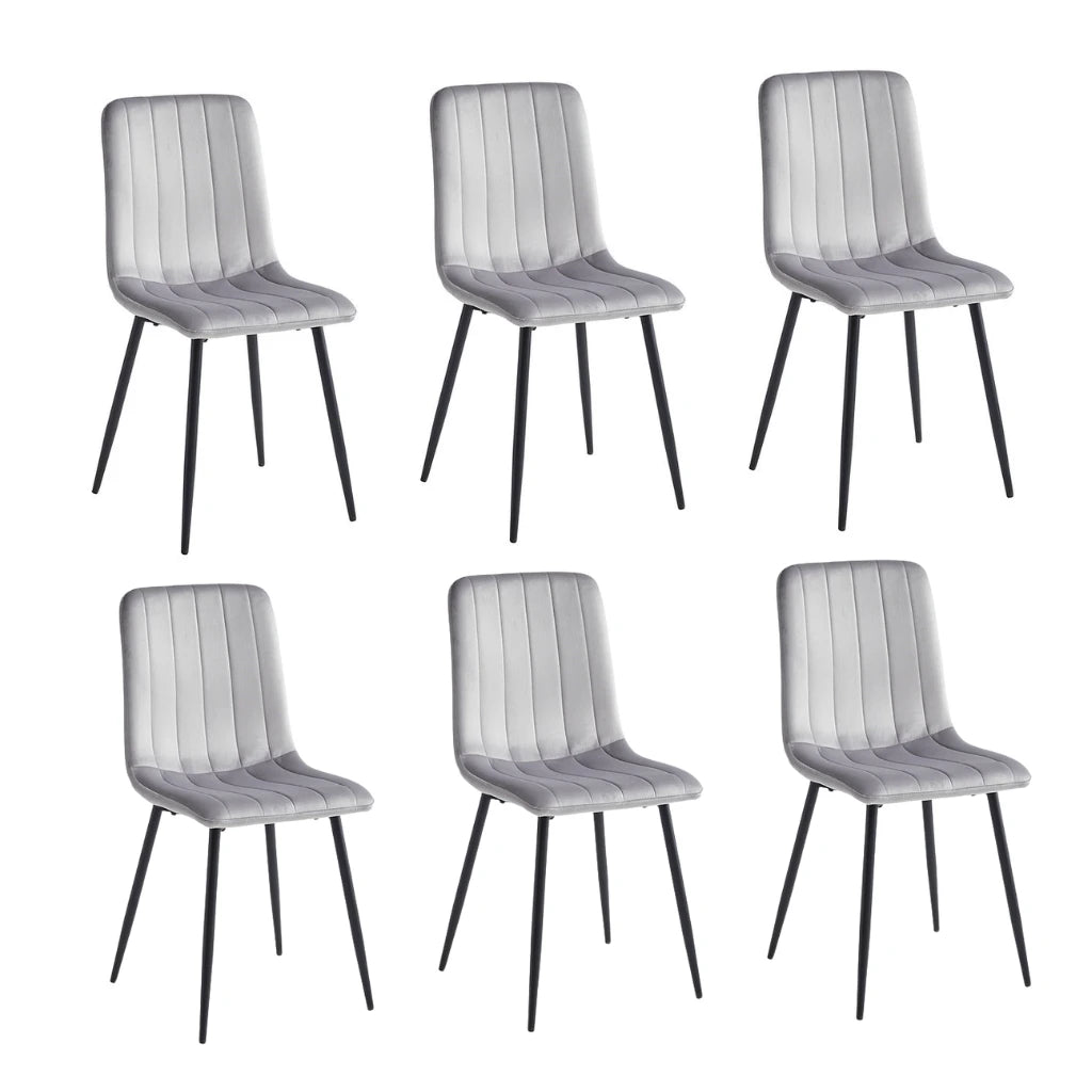 This set of 6 dining chairs blends soft light grey velvet with sleek black steel legs to create a modern and welcoming atmosphere. The plush upholstery feels luxurious, while the streamlined design keeps your space looking fresh and open. Whether you're hosting guests or enjoying a quiet dinner, these chairs add comfort and elegance to every meal.
