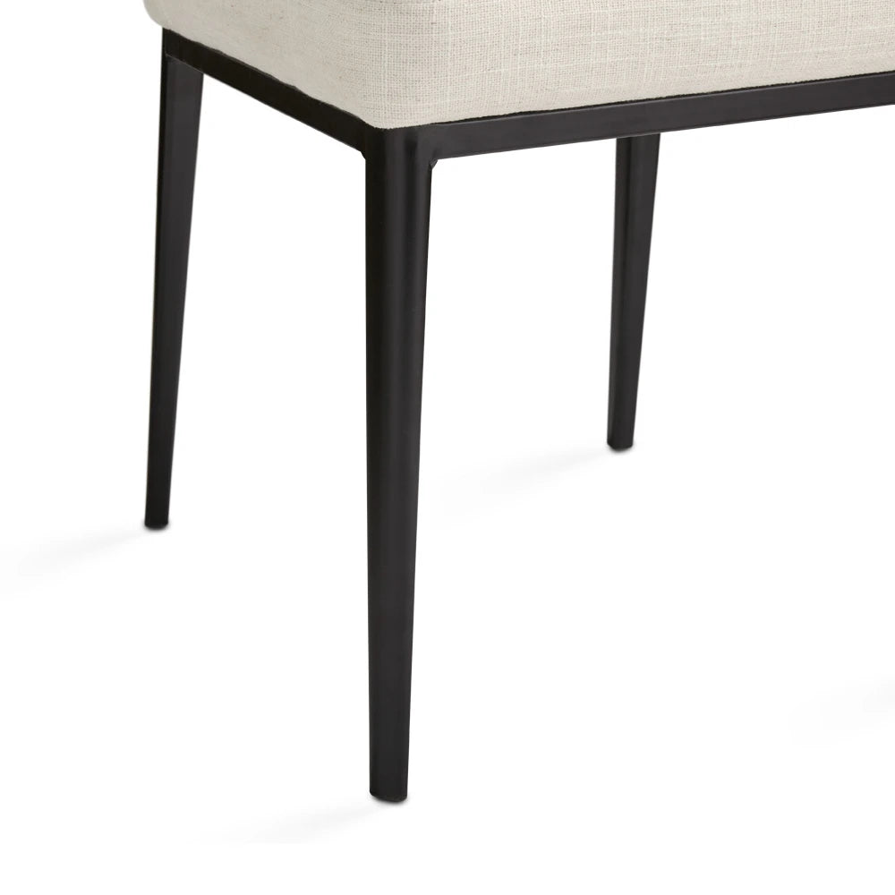 Built to perform. Designed to impress. The Shell commercial dining chair is a combination of contemporary flair and contract-grade strength. It's perfect for your home scene or any chic restaurant or café. Covered in soft beige linen fabric. This occasional piece gets a modern twist with an angled black metal base.