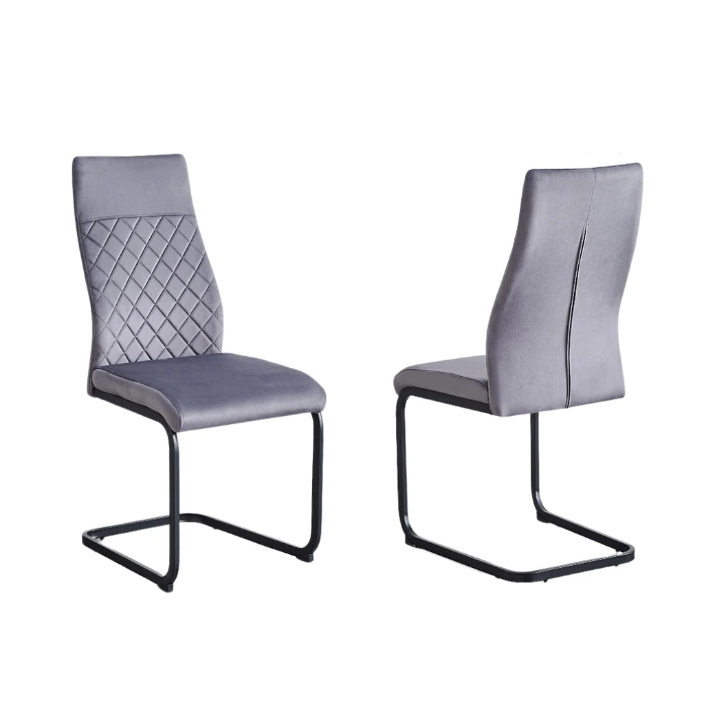 Upgrade your dining space with a touch of luxury and comfort. This set of 6 velvet dining chairs is where sleek design meets everyday function. Whether you're hosting a family dinner or a cozy brunch, these chairs are built to impress and made to last. Each chair is wrapped in ultra-soft velvet available in classic black or modern grey. The diamond stitching detail adds a rich, upscale texture. And the C-shaped black steel base? It gives a stylish twist while providing rock-solid stability.