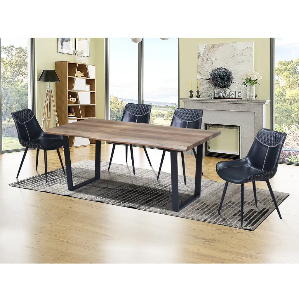 Make every meal feel like an occasion. This 5 piece dining set with wood table blends modern durability with warm, welcoming style. The 71-inch wooden dining table offers plenty of space for family dinners, game nights, or weekend brunch. Its black metal legs bring a sleek, contemporary touch while keeping the structure strong and steady for years.