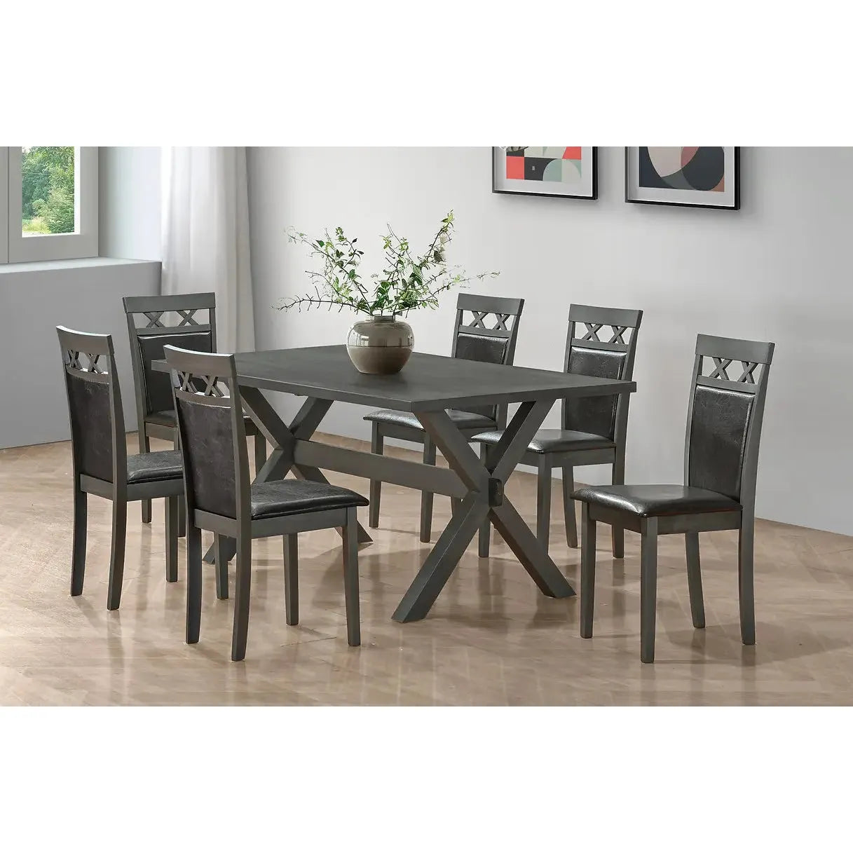 7-Piece Dining Set with Upholstered Chairs – Antique Grey Finish