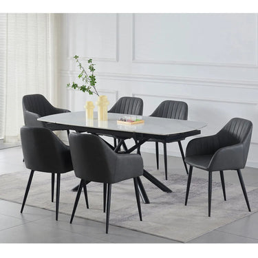 - 7-piece set: 1 extendable table + 6 soft grey PU armchairs