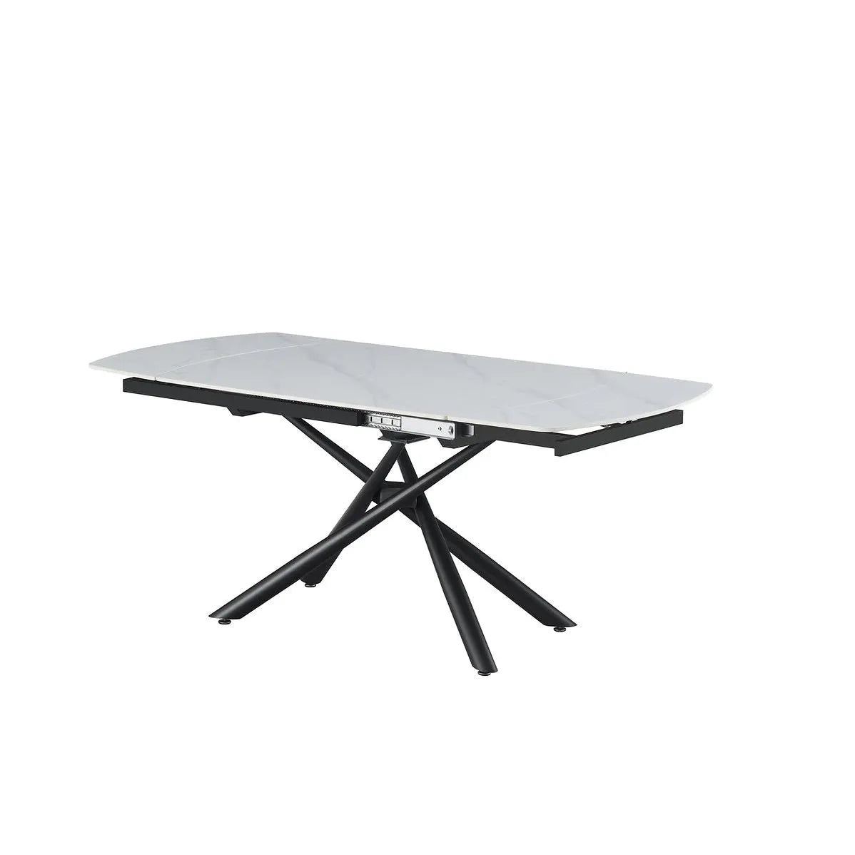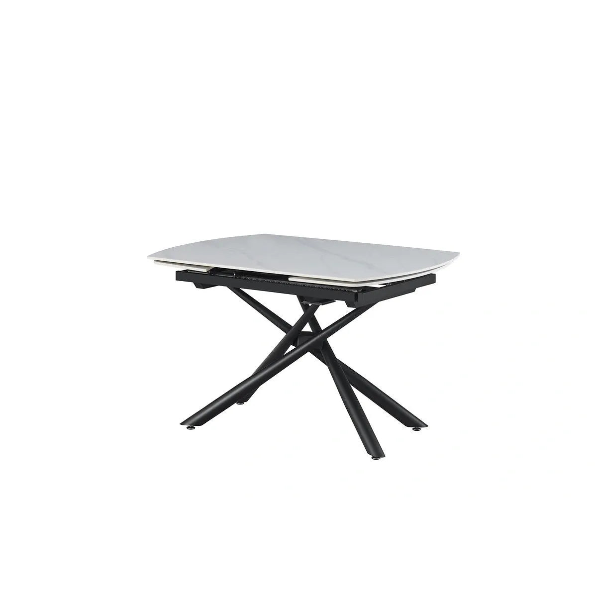 This extendable dining set gives you both space and style, without compromise. It’s modern, practical, and made to grow with your gatherings. The table’s snowy white sintered stone top gives you the clean, sophisticated look of marble—without the worry. It’s scratch-resistant, heat-resistant, and built for everyday life. Smooth corners keep things soft. Family-friendly. Effortless. But here’s where it gets really smart: hidden slide-out leaf extensions. Go from cozy dinners to full-on feasts in seconds. No tools. No stress. Just pull and expand. The X-shaped black steel legs add modern edge and strong support. It’s sturdy and sleek all at once.