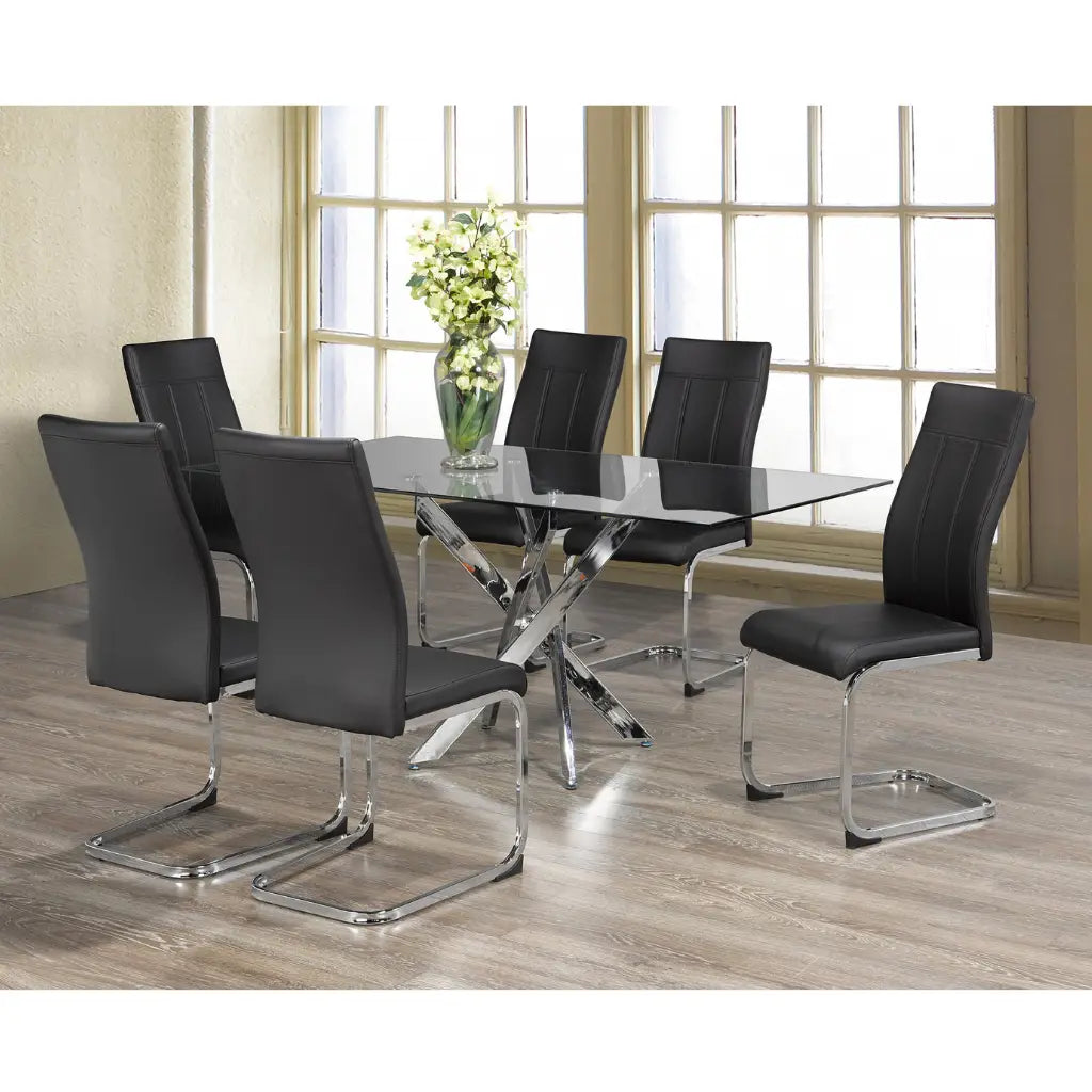 7-Piece Glass Dining Table Set with PU Cushion Chrome Chairs