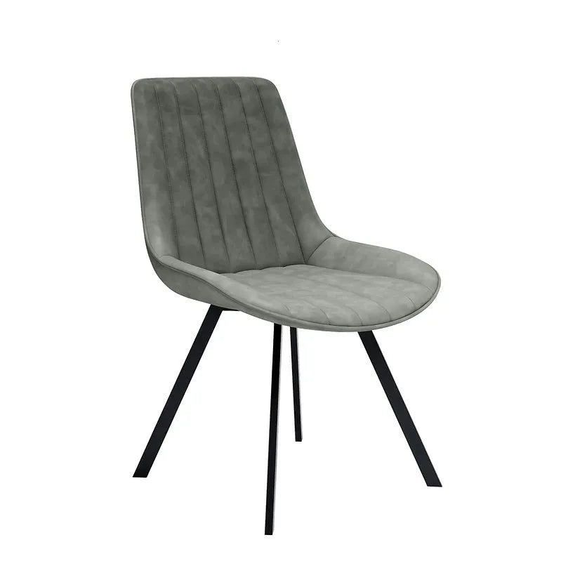 The chairs are where comfort comes in. Soft grey PU wraps around a cushioned seat. Black steel legs echo the base of the table, tying the look together effortlessly. The vibe? Modern. Understated. Classy.