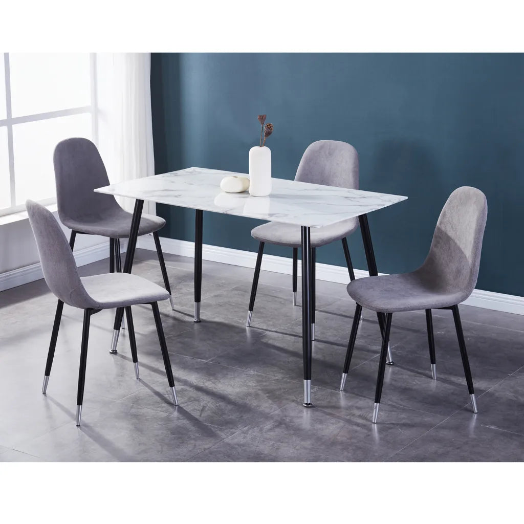 Modern Marble Glass Dining Set for 4 with Grey Fabric Chairs