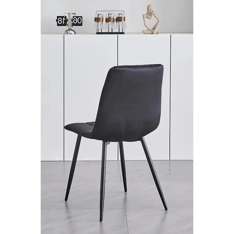 The chairs? They’re where comfort meets style. Wrapped in soft velvet and finished with cross-stitching details, they look as good as they feel. The slim black steel legs elevate the vibe. Choose from classic black or elegant grey—both are timeless.