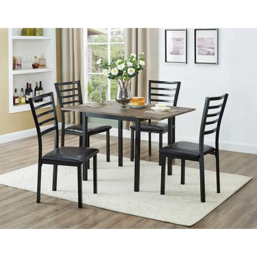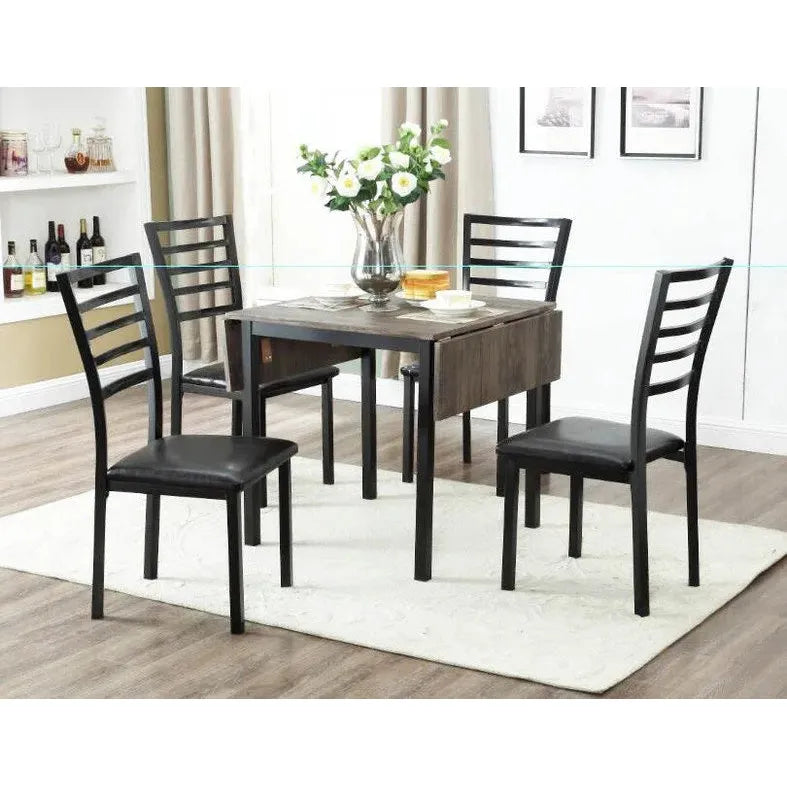 - 5-piece set: 1 drop leaf table + 4 cushioned chairs